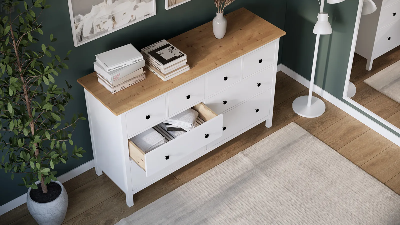 Комод КЫМОР 8 ящиков белый/светло-коричневый