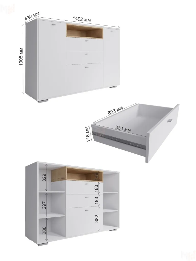 ширина 1492 мм, глубина 432 мм, высота 1005 мм
