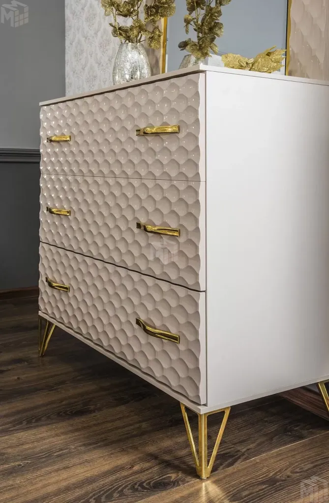 Комод Lara 3 ящика бежевый глянец