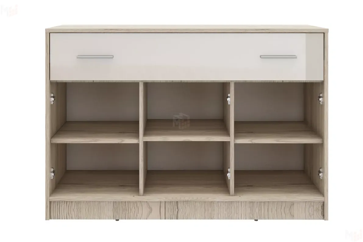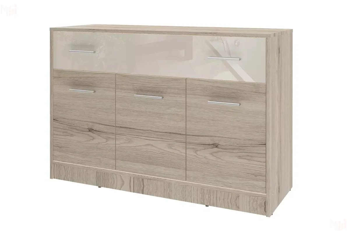 Торцевые поверхности корпуса закромлены кромками ПВХ и ABS. Фасады изготовлены из 16 мм ламинированной древесностружечной плиты цвет –«Дуб Санремо» и «Крем Бежевый». По периметру фасады закромлены кромками ПВХ и ABS. Детали, изготовленные из древесностружечной плиты цвет – «Крем Бежевый», обработаны на лаконаливных машинах имеют высоко глянцевую поверхность .