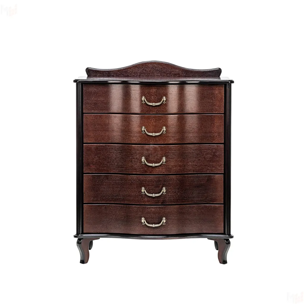 Идеальный классический комод для изысканной спальни. Пять удобных выдвижных ящика позволяют наиболее функционально использовать пространство и объем комода. Материалы, из которых выполняется комод, обеспечивают высочайшую надежность.