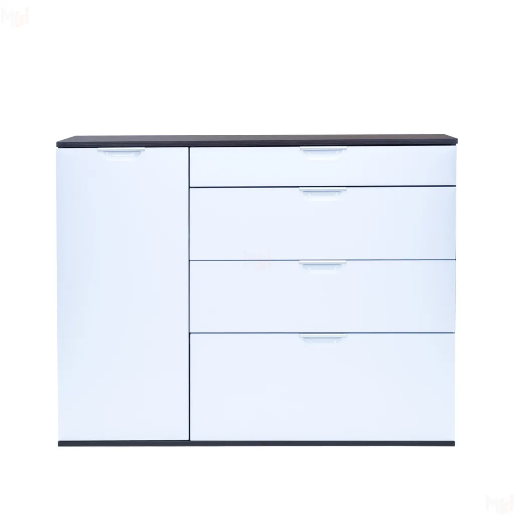 Комод Никас-3 современный, стильный и функциональный. Все фасады из МДФ плиты пакуются отдельно от корпуса, благодаря чему глянцевые поверхности не царапаются и не теряют товарный вид.
