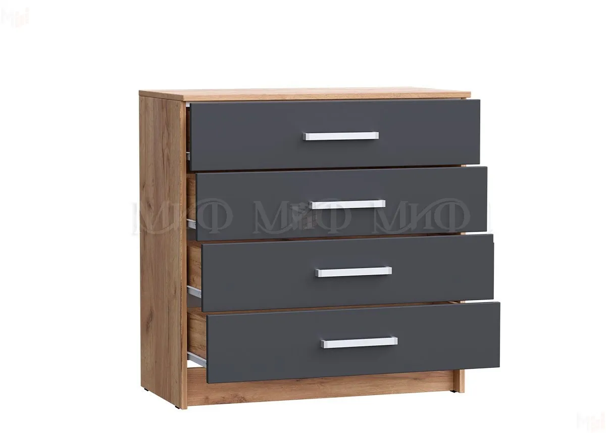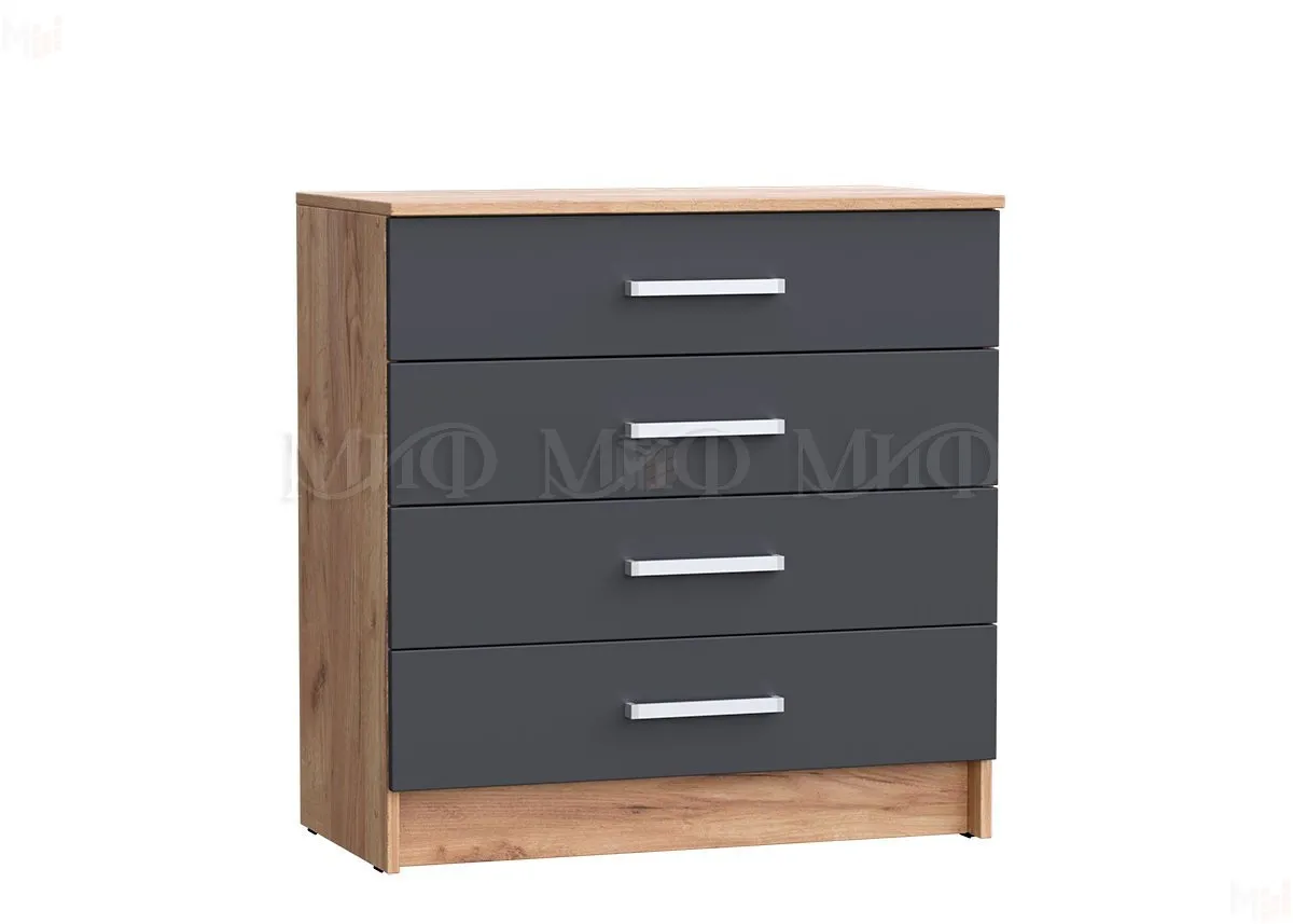 Каркас комода выполнен из ЛДСП Дуб крафт золотой, фасады ЛДСП Графит.