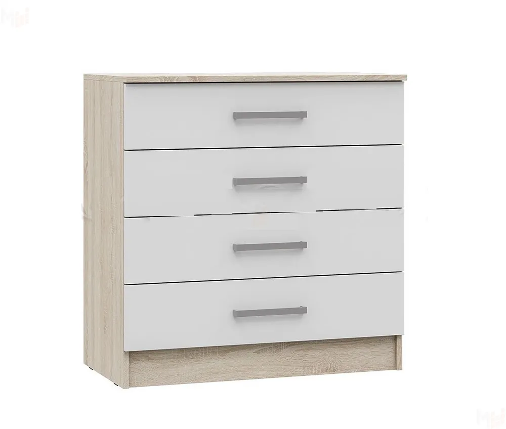 Каркас комода выполнен из ЛДСП Дуб сонома, фасады ЛДСП Белый глянец.