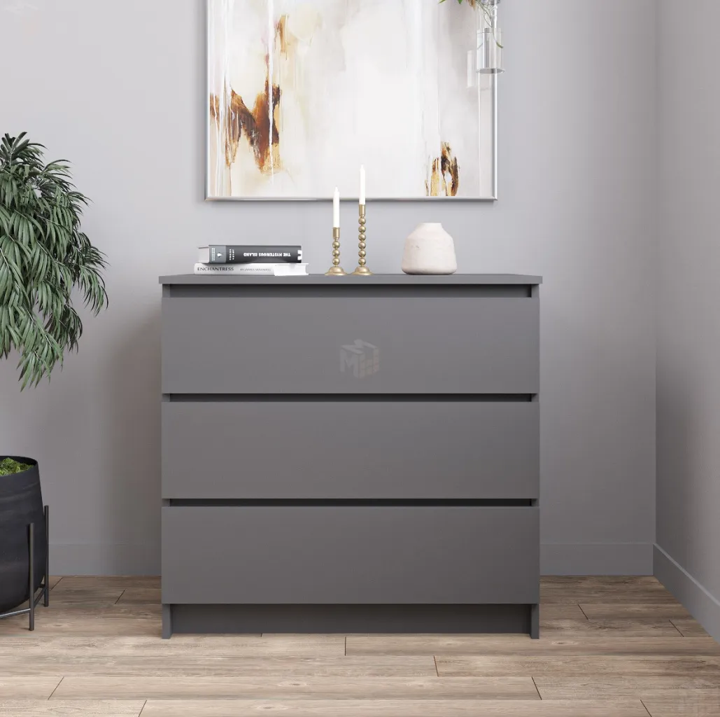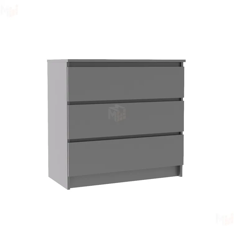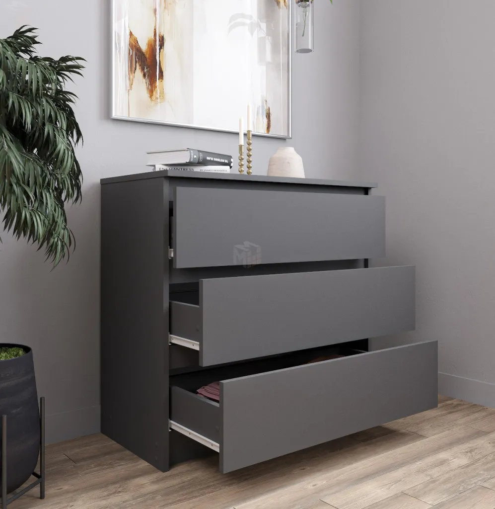 Комод имеет три выдвижных ящика на роликовых направляющих.