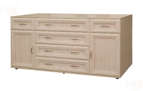 Новинка от фабрики М-Сервис. Многофункциональный комод с несколькими выдвижными ящиками для хранения мелочей, с дверками по бокам. За дверкой есть полка. Комод выполнен из ЛДСП, двери в рамочных фасадах МДФ. Комод выполняется в современной цветовой гамме, на выбор - дуб молочный, венге, ясень шимо темный, орех экко, орех итальянский, дуб молочный/венге.