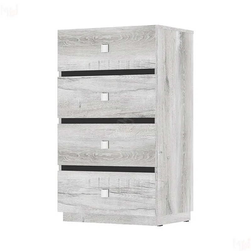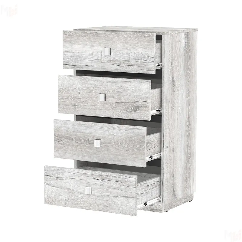 Поддержать порядок в спальне прекрасн поможет комод. На столешнице расставьте рамки с любимыми фотографиями или стильные интерьерные вещицы, вместительные ящики помогут организовать правильное хранение вещей. 4 вместительных ящика глубиной 35 см, высотой 14 см и шириной 53 см для размещения одежды и косметики. Ящики оснащены шариковыми направляющими полного выдвижения, что обеспечит высокую прочность и бесшумность при эксплуатации. Навесьте над комодом NEO 59 Зеркало навесное и получите функциональное место для нанесения макияжа.Металлические ручки