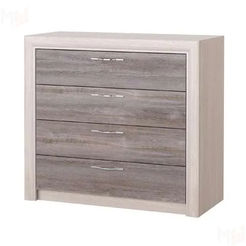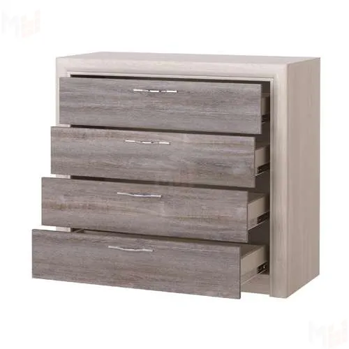 Комод 4Я "Октава" с 4-мя ящиками на шариковых направляющих полного выдвижения. Устанавливается стильная металлическая ручка, декор "тёмный никель". Периметр комода обрамлён профилем MDF оригинальной формы с патиной (окраской фасок) серебристого цвета.