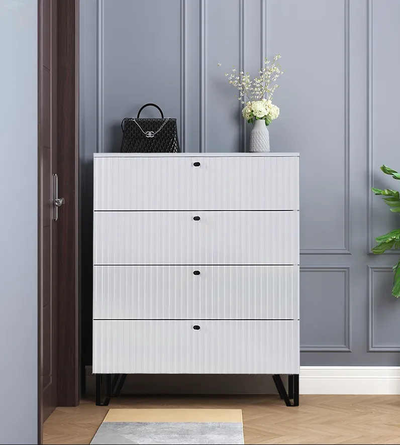 Комод выполнен из ЛДСП белый, фасады МДФ Белый глянец.