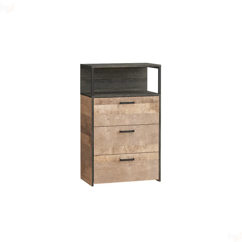 Комод с ящиками Трувор 13.307.02 будет отличным дополнением интерьера любой комнаты. На открытой полке будут гармонично смотреться интересные и увлекательные книги, семейные фотографии, коллекции интересных предметов, оригинальные сувениры, статуэтки и детские поделки. В трех выдвижных ящиках можно хранить более ценных и важные предметы, а также одежду и белье. Индустриальная мебель Трувор выполнена в стиле лофт.