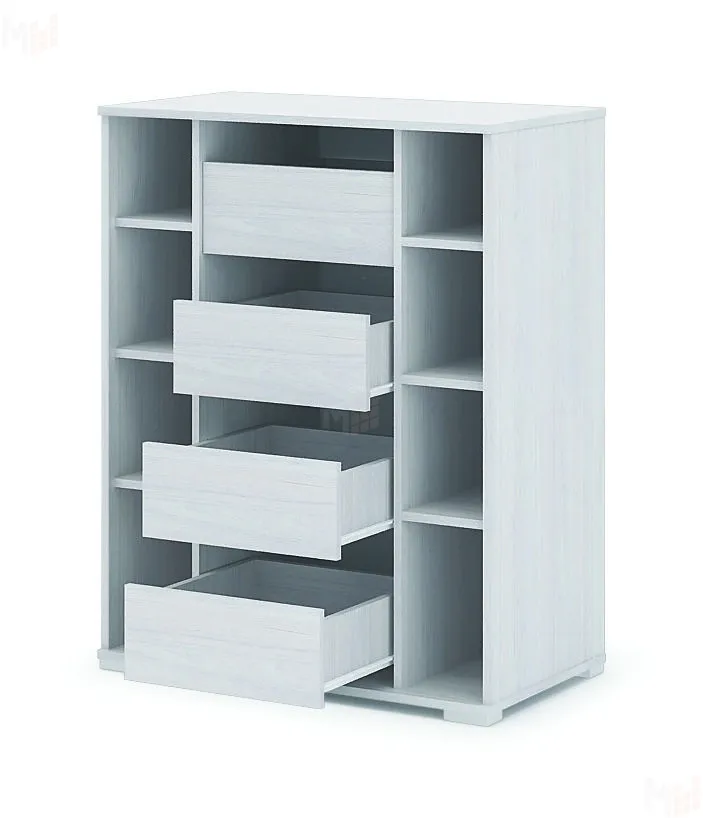 Комод Сальма КМ 022 гармонично будет смотреться в любом интерьере и станет незаменимым элементом. За двумя распашными дверцами находятся полки и четыре выдвижных ящика, которые созданные для аккуратного хранения сложенной одежды, постельного и нижнего белья, различных аксессуаров, украшений и косметики. Сверху на комоде можно разместить несколько семейных фотографий, вазу или горшок с цветами, а также разнообразные предметы декора.