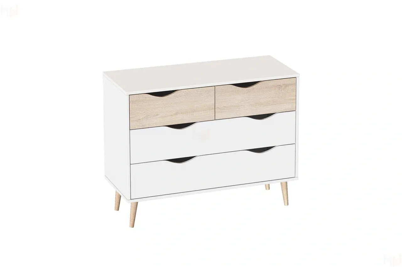 Комод Соната не только функционален, но и стильно выглядит, что позволит ему гармонично сочетаться с другой мебелью в вашем доме. Комод изготовлен из качественных материалов, что гарантирует его долговечность и сохранение первозданного вида на долгие годы. Упорядочить хранение аксессуаров, одежды и белья помогут четыре выдвижных ящика с фасадами, декорированными вырезными ручками.