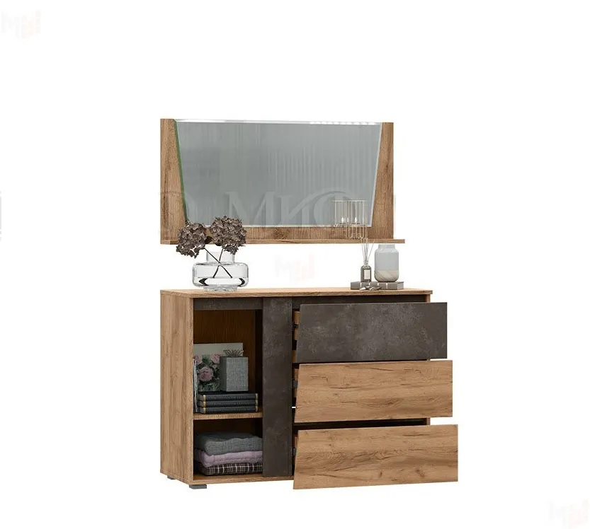 Комод выполнен из ЛДСП Дуб крафт/Бетон темный.
