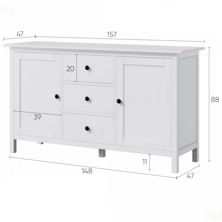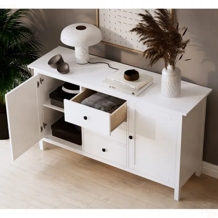 Комод Кымöр - это не просто элемент декора, но и практичное решение для хранения различных предметов. Выполненный в белом цвете, он идеально подойдет для светлых и минималистичных интерьеров, придавая пространству легкость и свежесть. Благодаря своей высоте, на комоде удобно разместятся предметы посуды, столовые приборы, текстиль или другие полезные вещи. Внутреннее пространство с полками или ящиками обеспечит аккуратное и удобное хранение всех необходимых предметов, поддерживая порядок и гармонию в вашем доме.