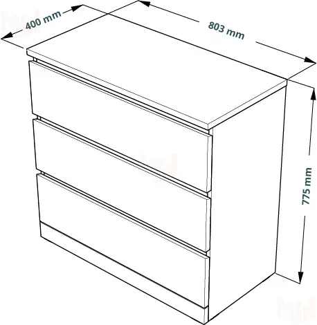 Ширина: 803 мм, Глубина: 400 мм, Высота: 775 мм
