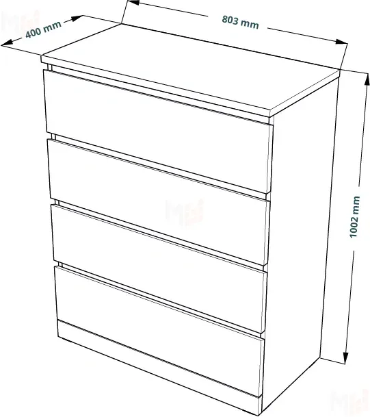 Ширина: 803 мм, Глубина: 400 мм, Высота: 1002 мм