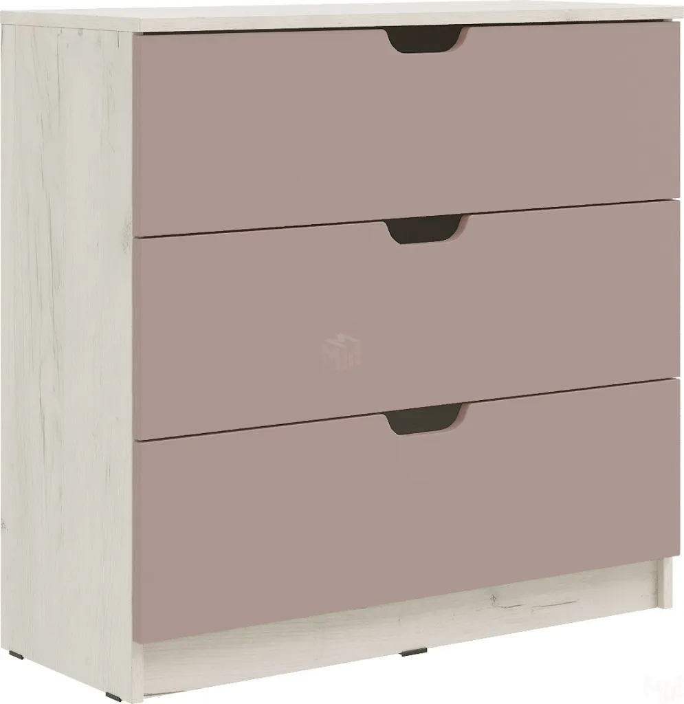 Корпус комода выполнен из ЛДСП Дуб крафт золотой, фасады МДФ Шарли пинк. -