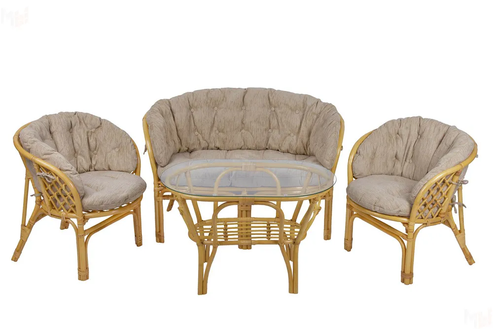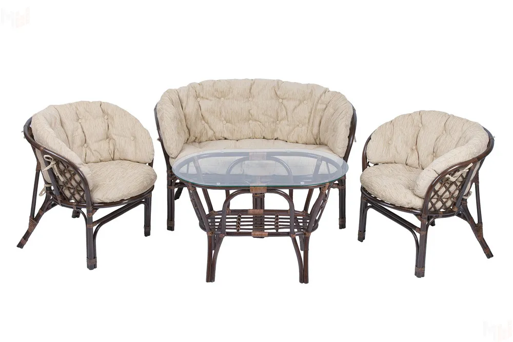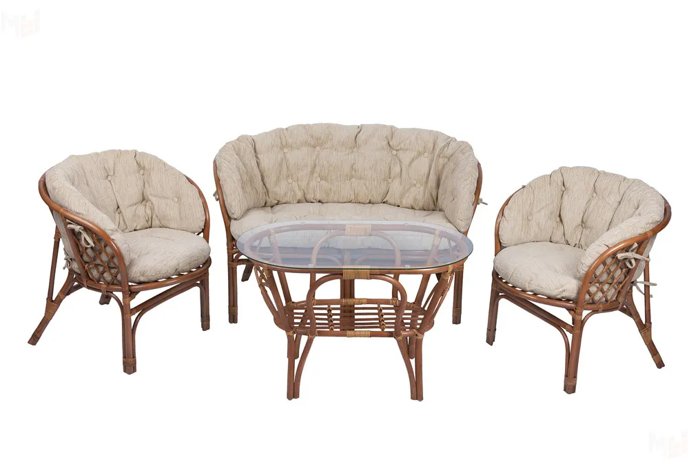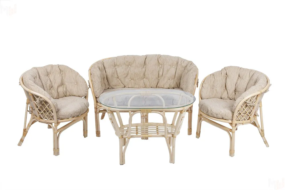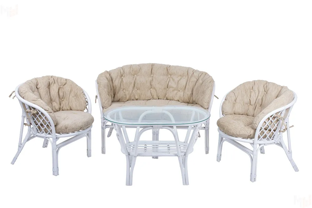 Комплект Багама с диваном и полными бежевыми подушками (стол овальный)