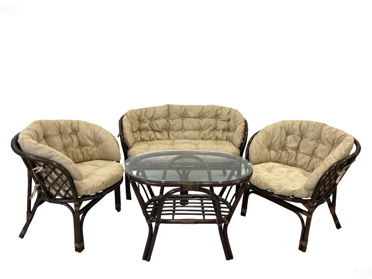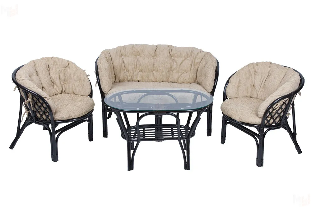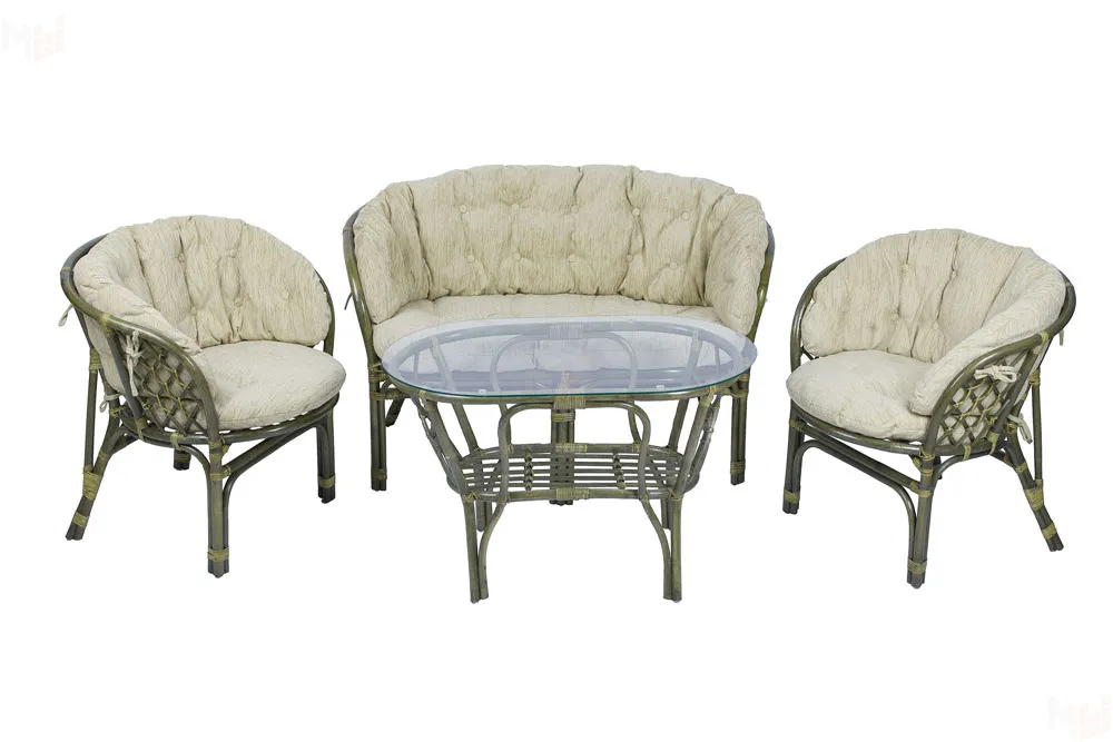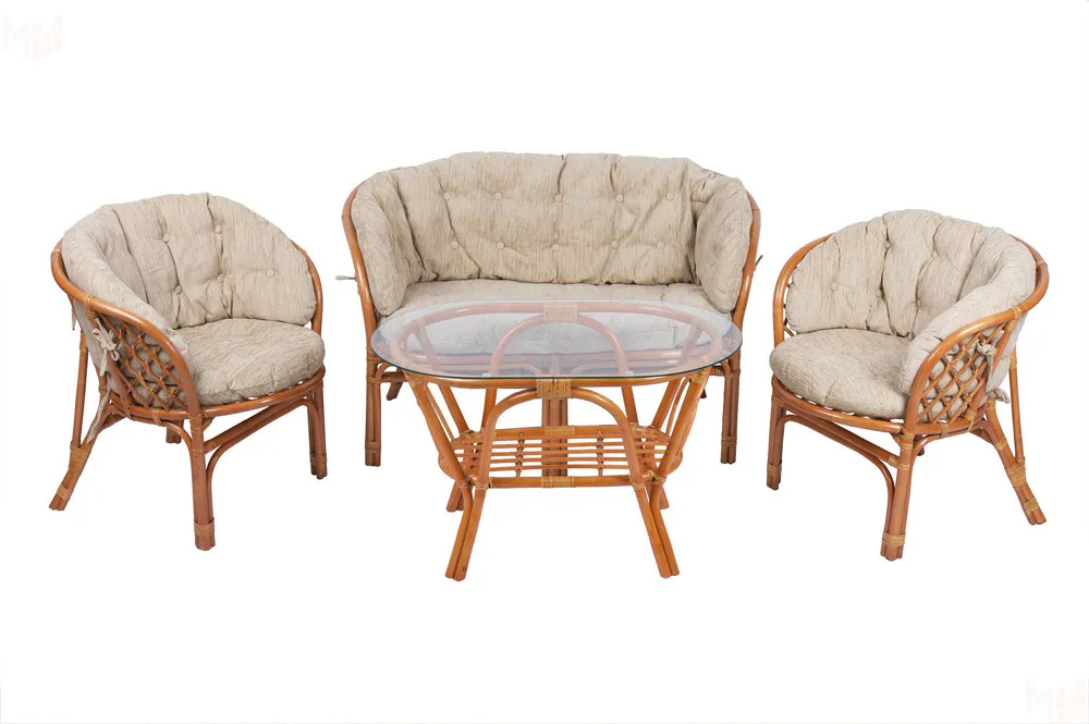 Комплект Багама с диваном и полными бежевыми подушками (стол овальный)