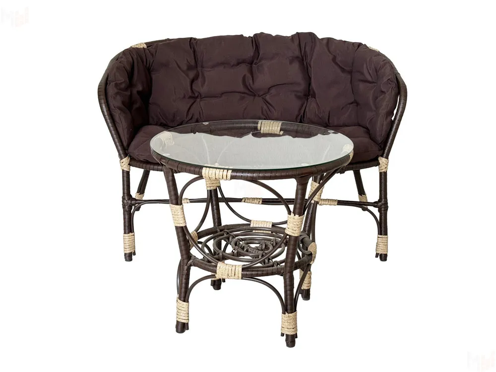 Комплект Багама с диваном и коричневыми ушастыми подушками (полиротанг)