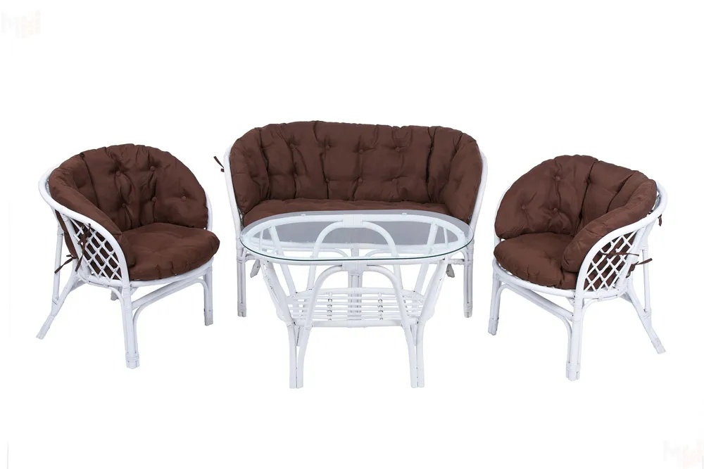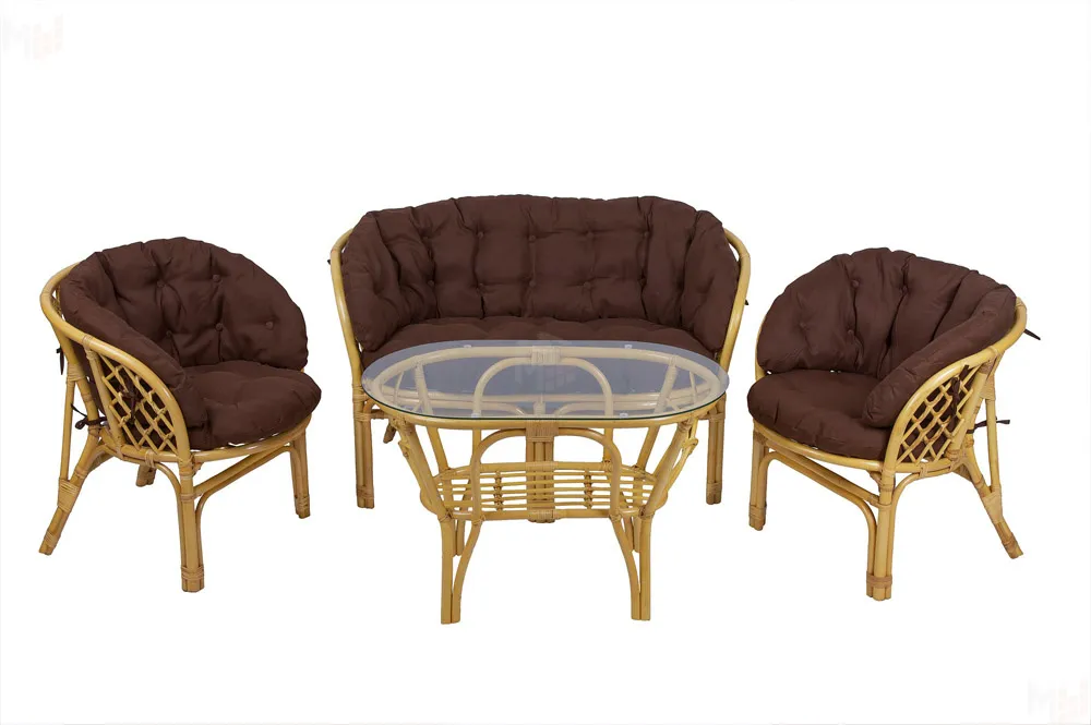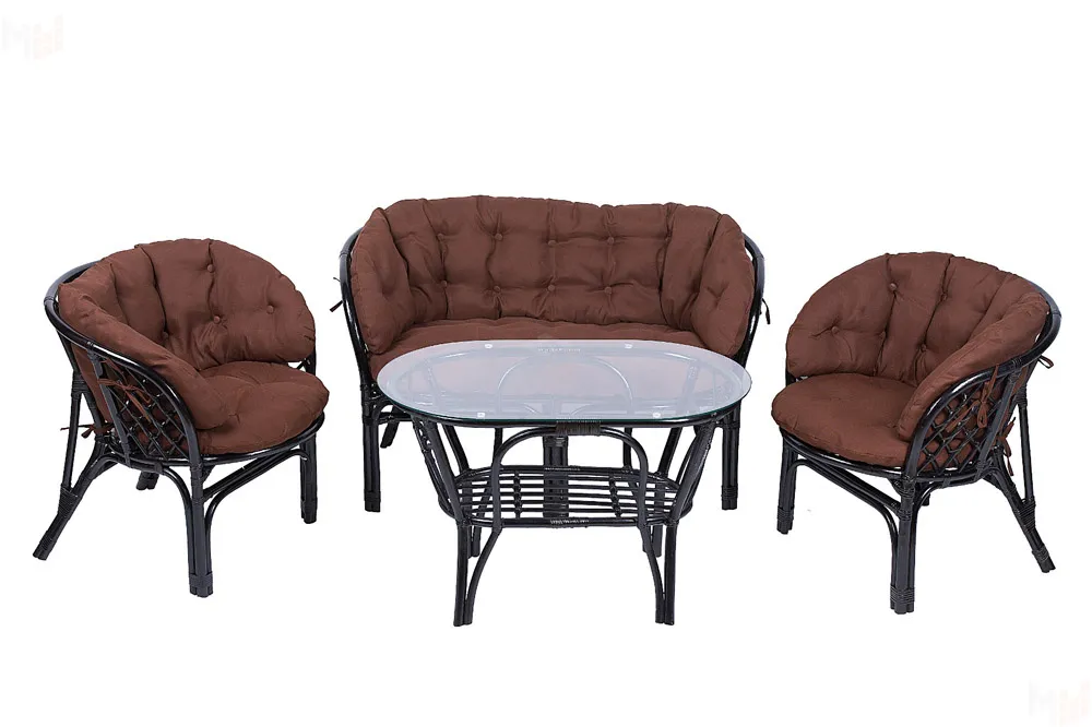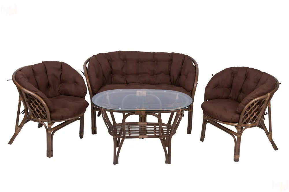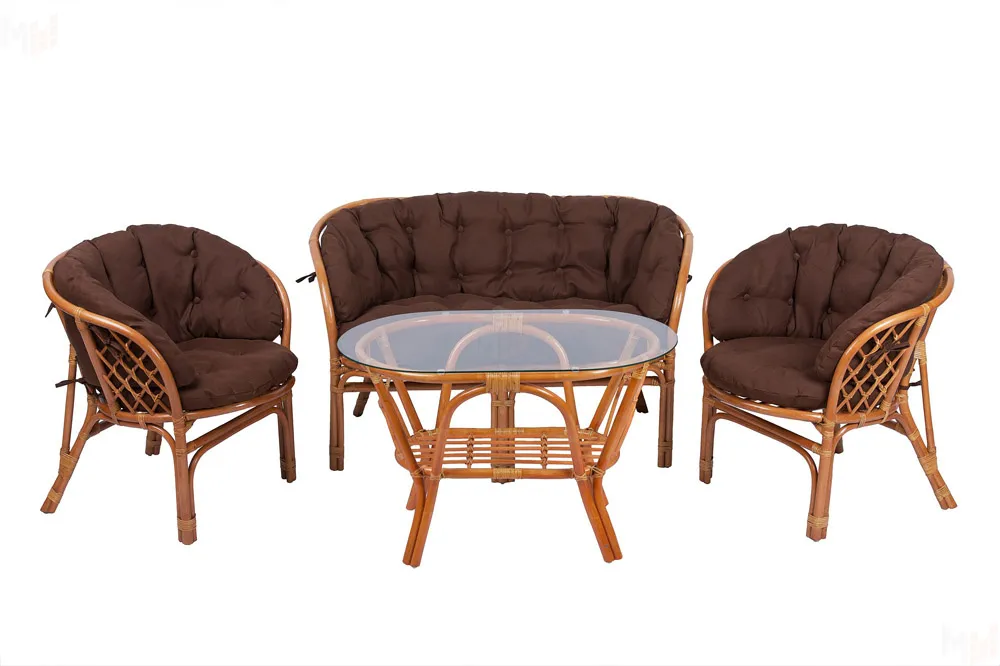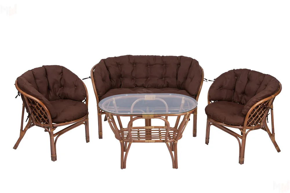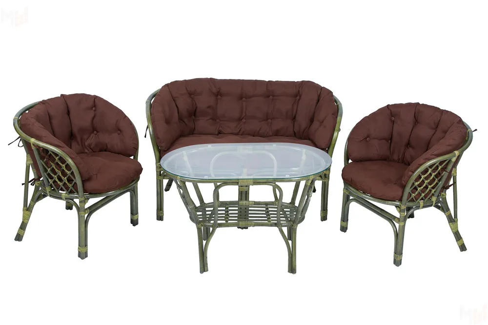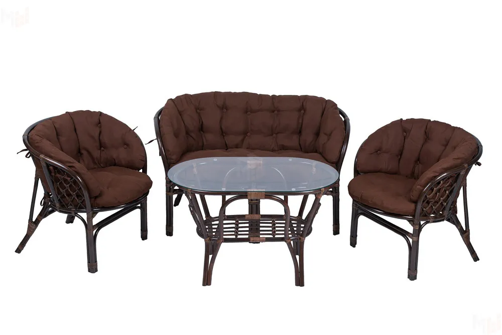 Комплект Багама с диваном и полными коричневыми подушками (стол овальный)