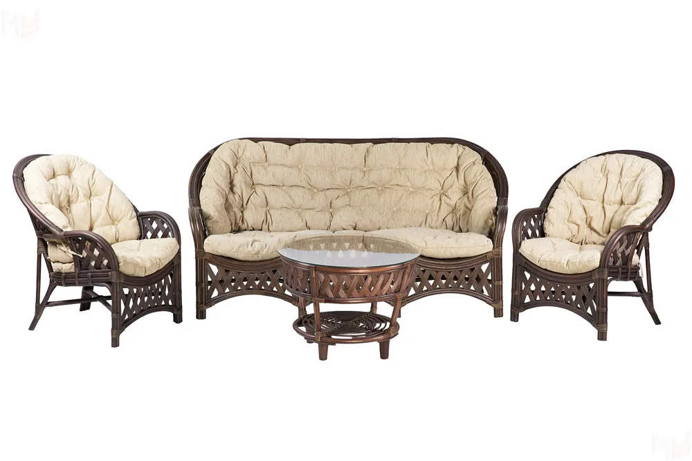 Удобный комплект с 3-х местным диваном и овальным столом (столик при желании можно заменить на круглый).