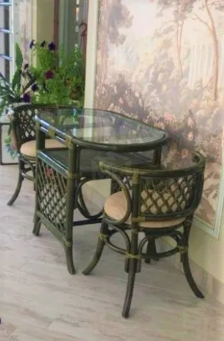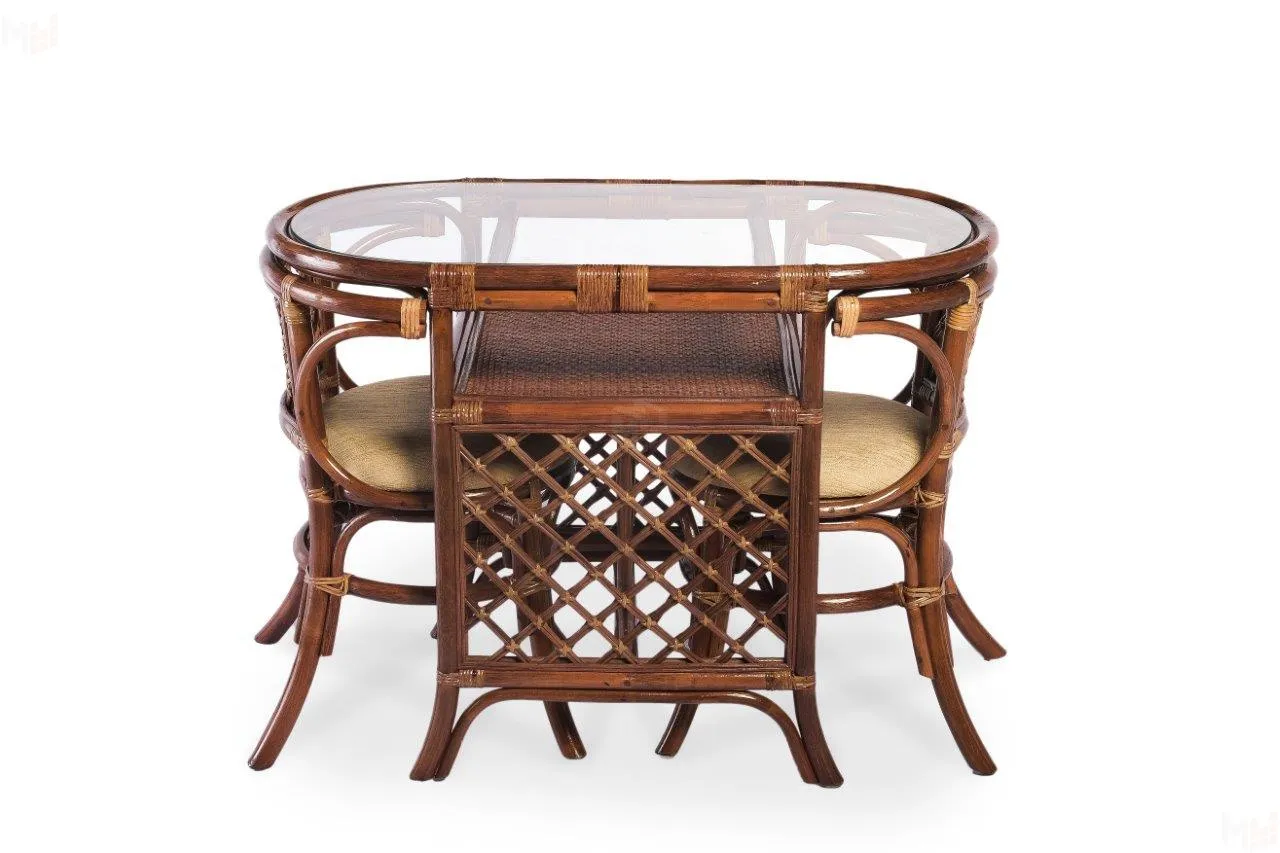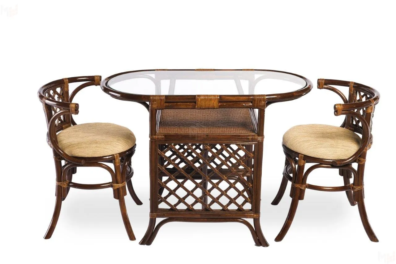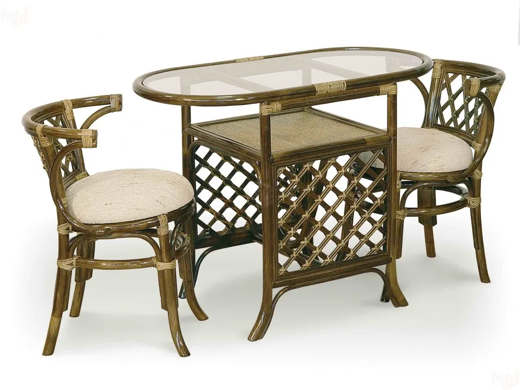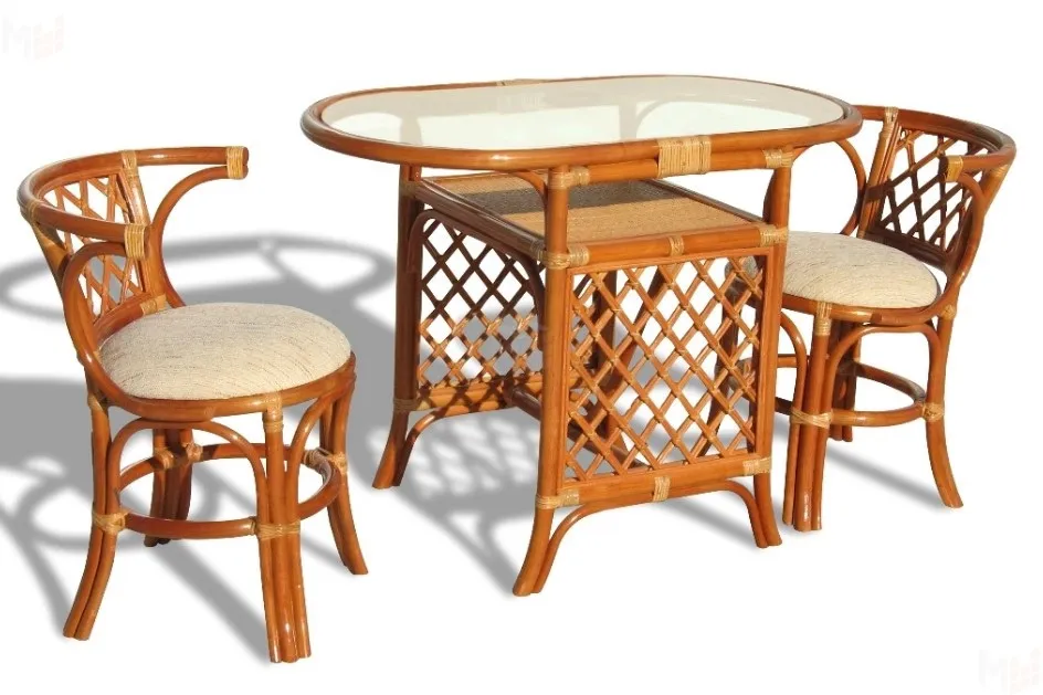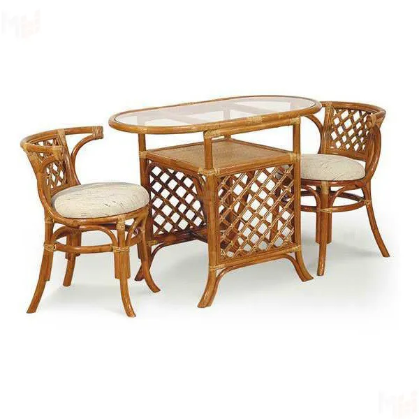 В комплект входят: столик, 2 кресла, выполненные из натурального ротанга.Габариты элементов: