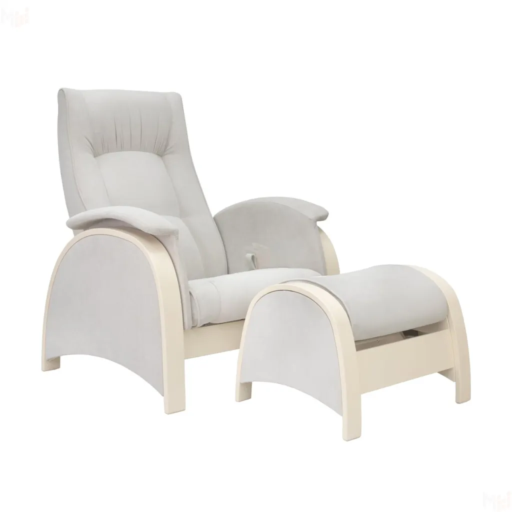 - Подножка представлена в виде пуфа, синхронно покачивается вместе с креслом и позволяет маме принять удобную, расслабленную позу. -