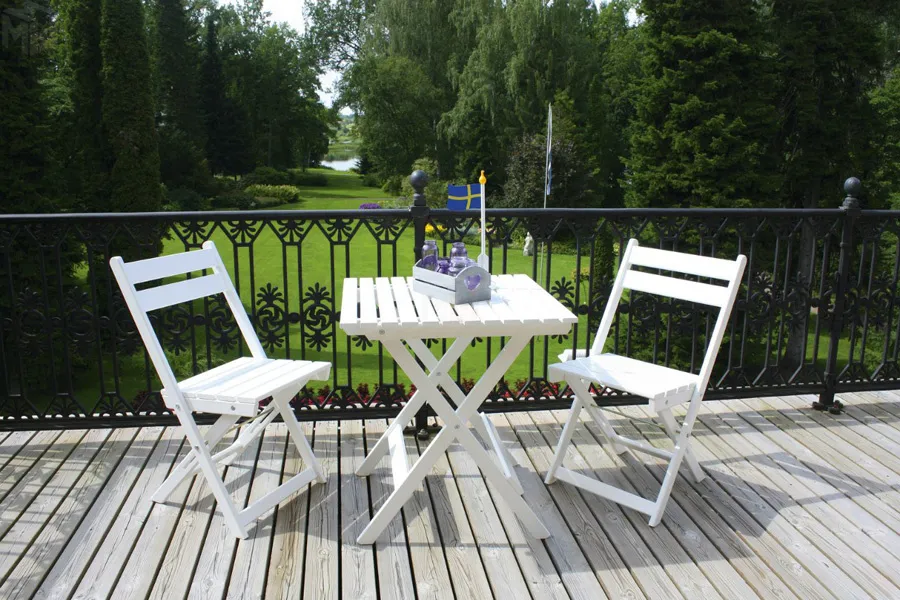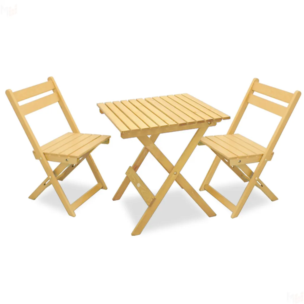 Набор из 3 предметов, комфортно разместит двоих человек. Включает в себя стол и два стула. Его можно использовать в качестве приставного сервировочного стола к большому обеденному садовому столу. Стулья складываются в плоскость толщиной 5 cм лёгким движением руки без использования инструментов. Небольшой наклон сиденья стула позволяет комфортно сидеть даже без упора ногами о пол. Набор можно легко взять с собой на пикник в багажник автомобиля.