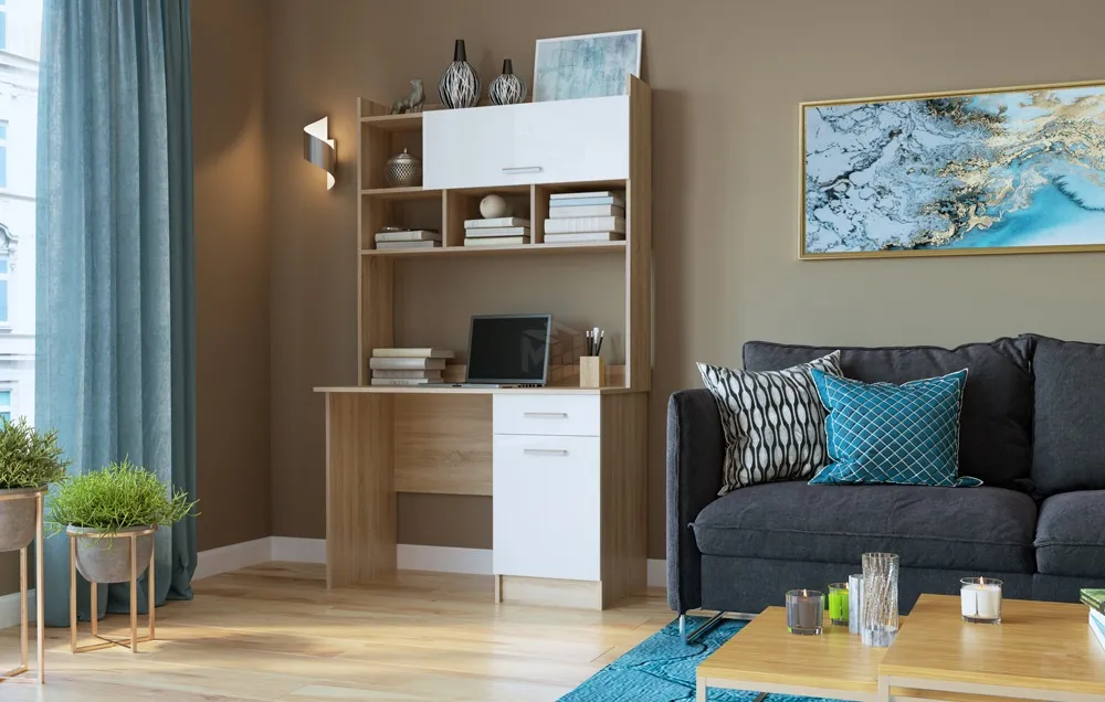 Компьютерный стол ПКС-2 (сонома/белый глянец)
