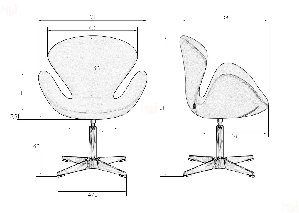 Кресло дизайнерское DOBRIN SWAN (бордо ткань AF5, алюминиевое основание)