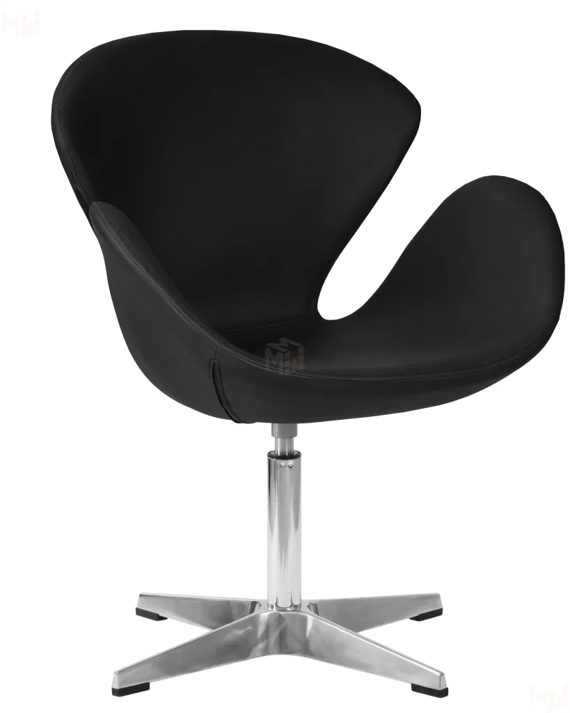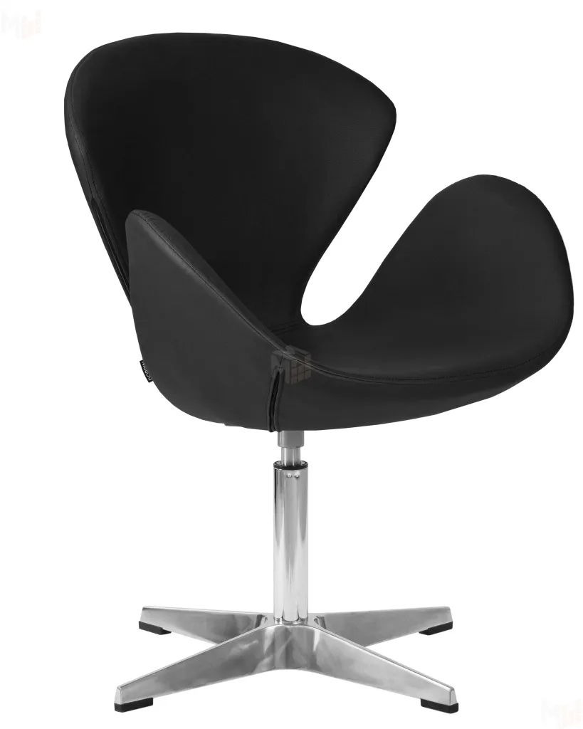 Кресло дизайнерское DOBRIN SWAN (черный кожзам P13, алюминиевое основание)