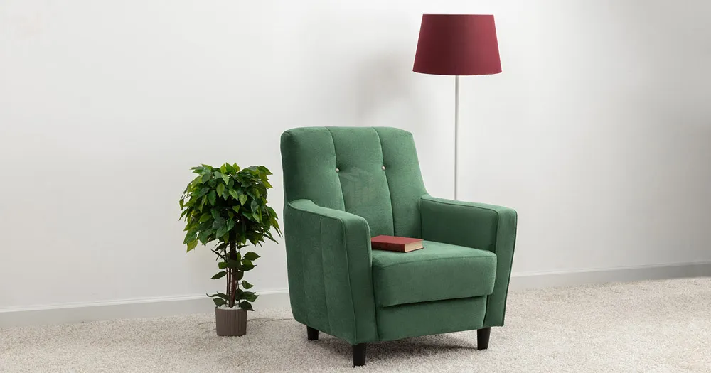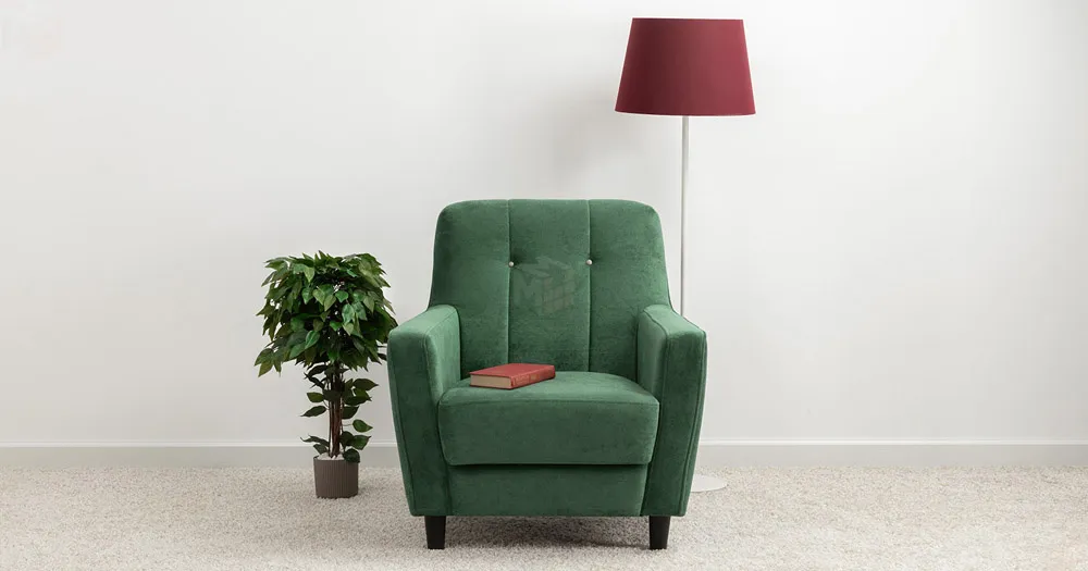 Стежка на внутренней спинке и боковине. Отделочная строчка по сидению. Декоративный кант в тон на подлокотниках и спинке. Изюминку коллекции придают металлические пуговицы на спинке.