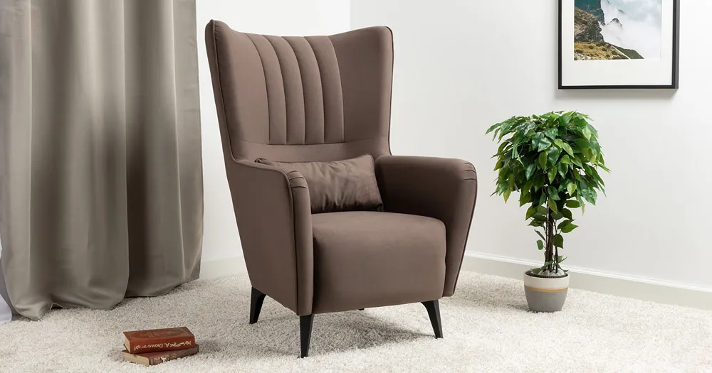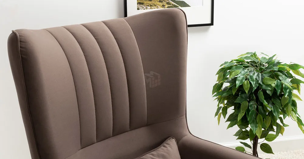 Вертикальная объемная стежка в средней части спинки; кант на спинке, подлокотниках и декоративной подушке