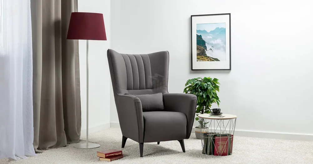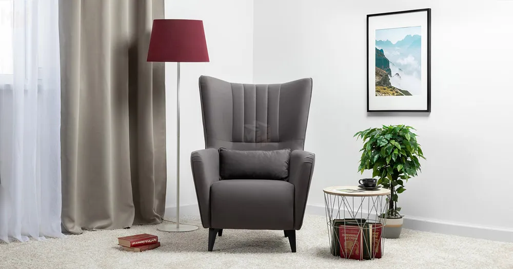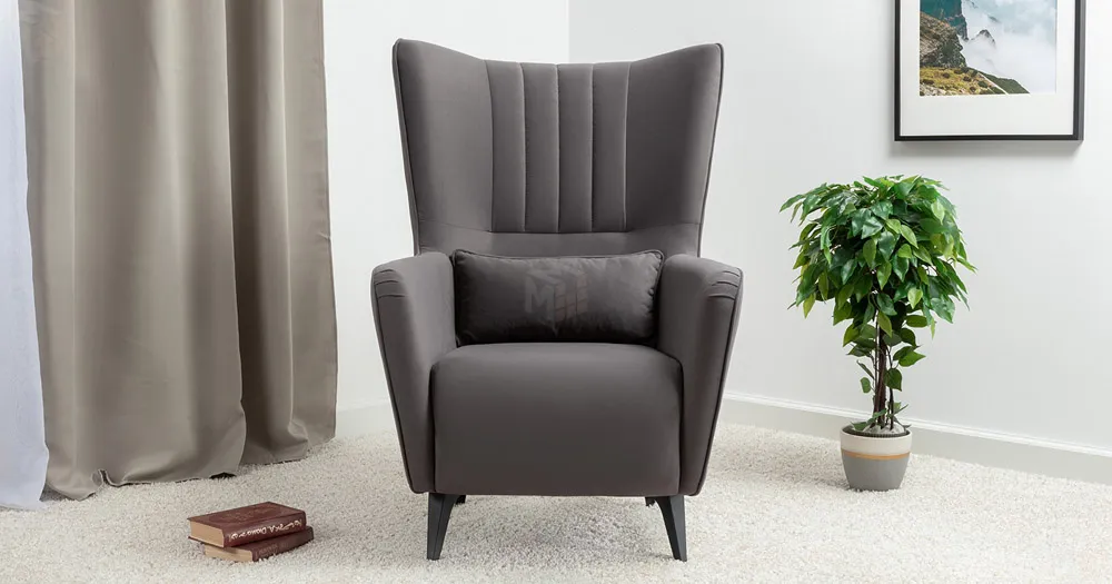 Вертикальная объемная стежка в средней части спинки; кант на спинке, подлокотниках и декоративной подушке