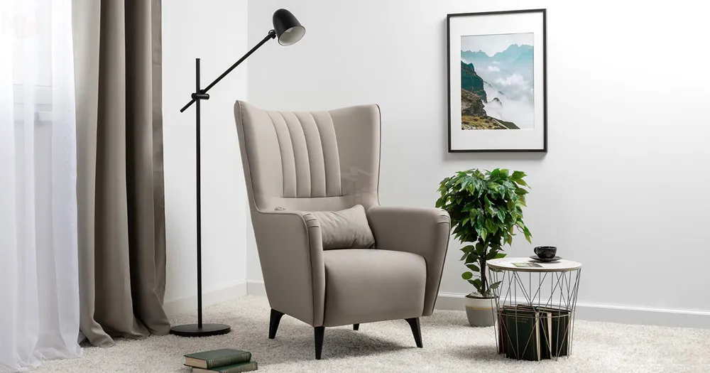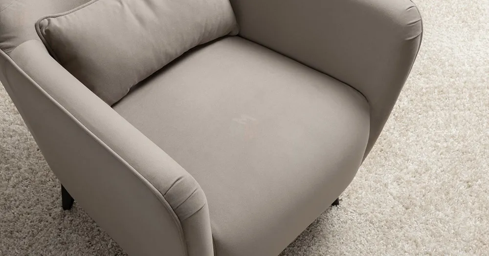 Вертикальная объемная стежка в средней части спинки; кант на спинке, подлокотниках и декоративной подушке