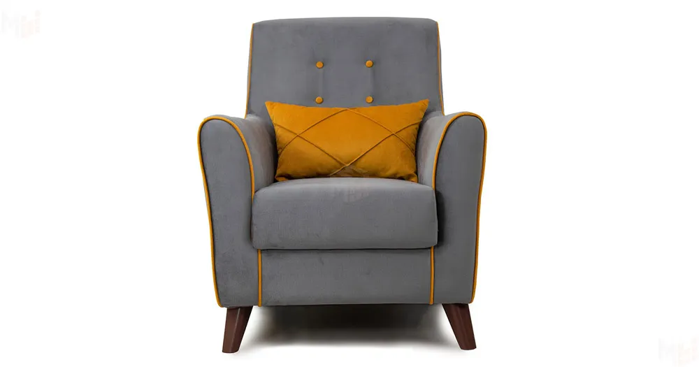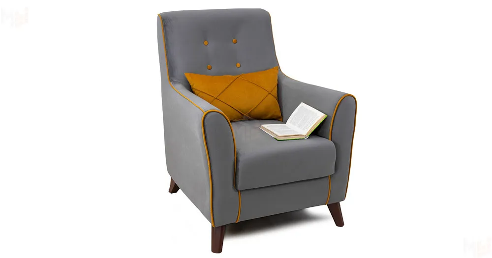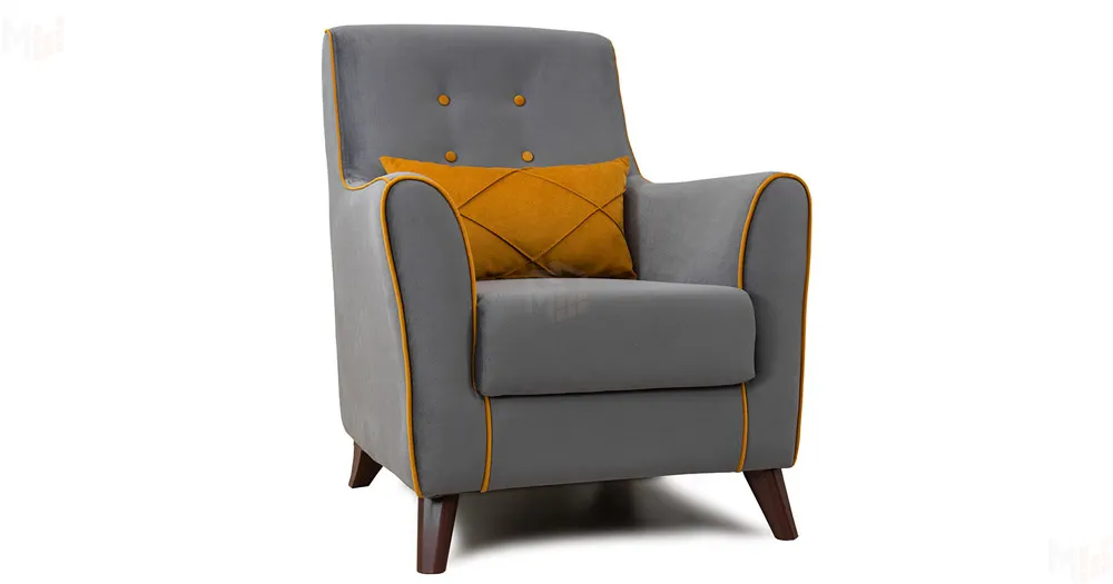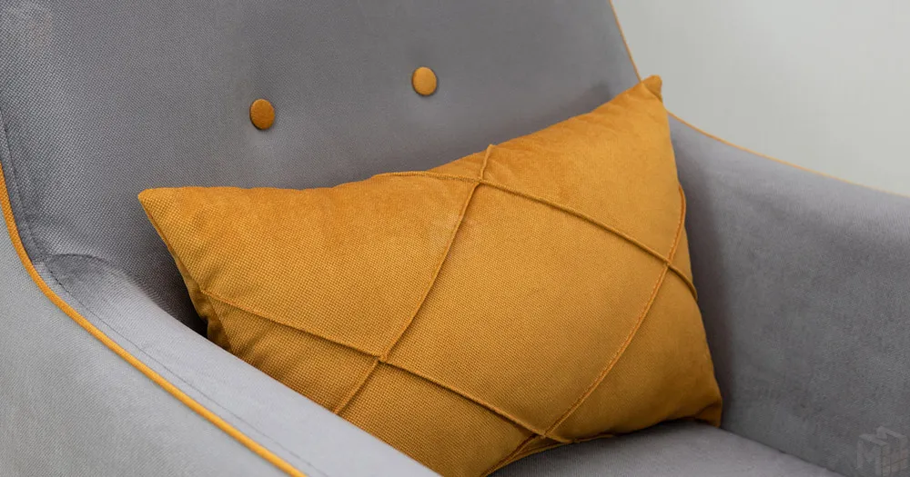 Декоративный кант на кресле, защипы на декоративной подушке, пуговицы на спинке.