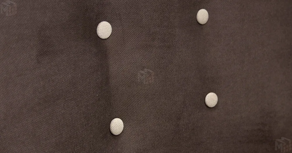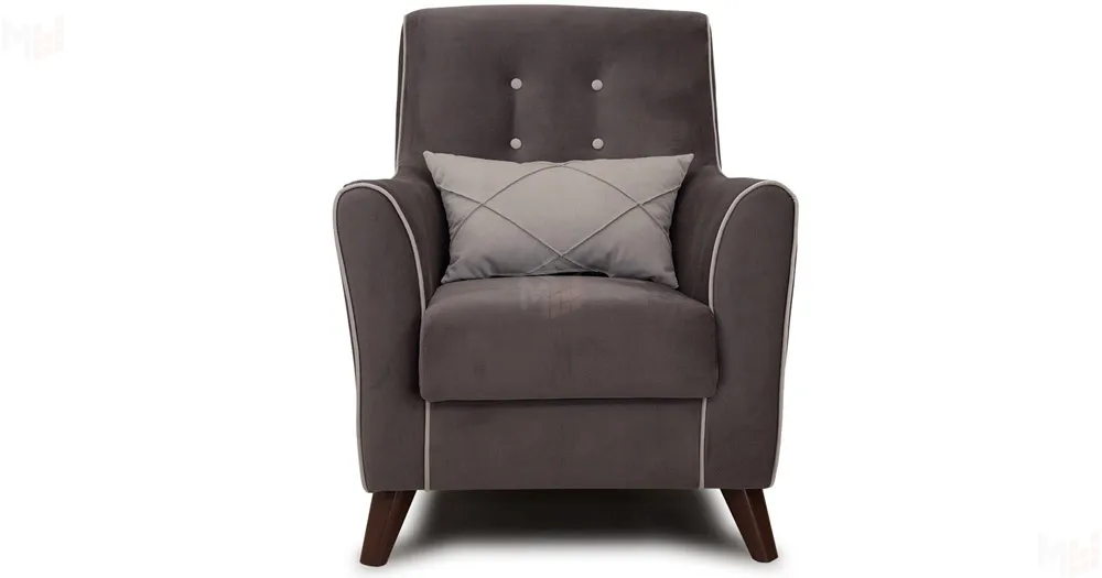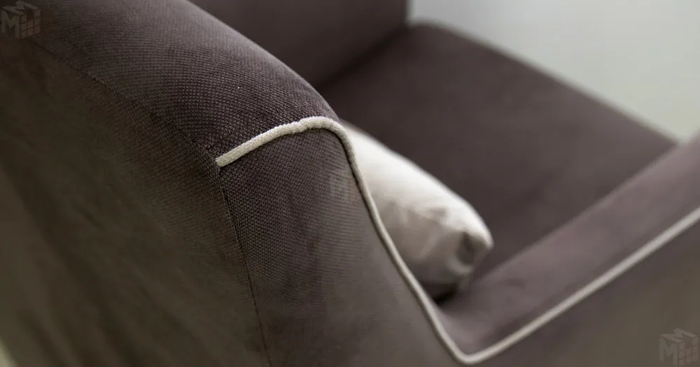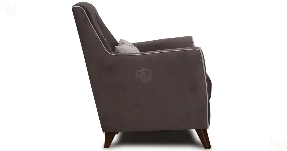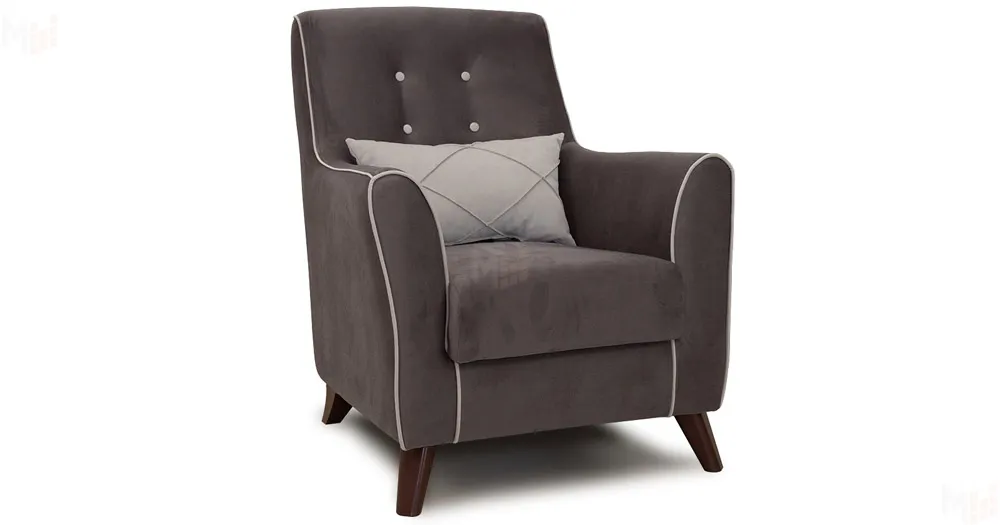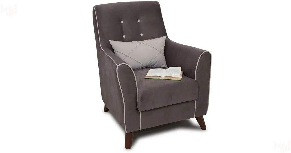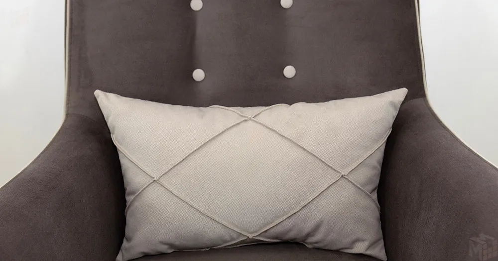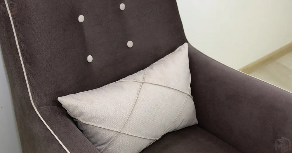 Декоративный кант на кресле, защипы на декоративной подушке, пуговицы на спинке.