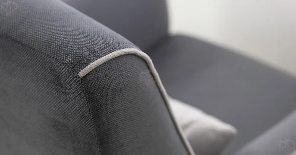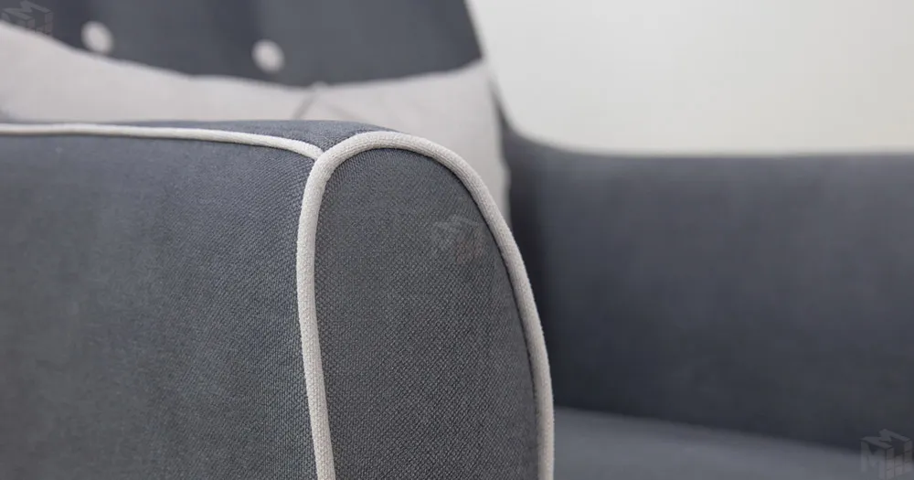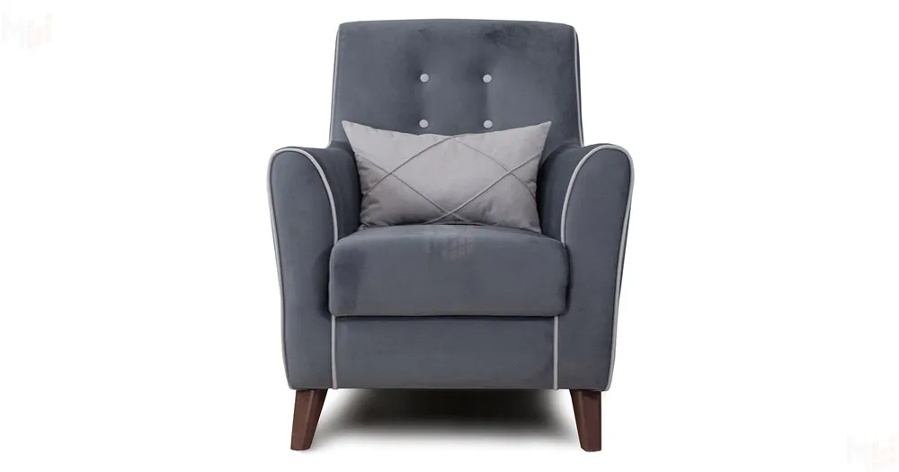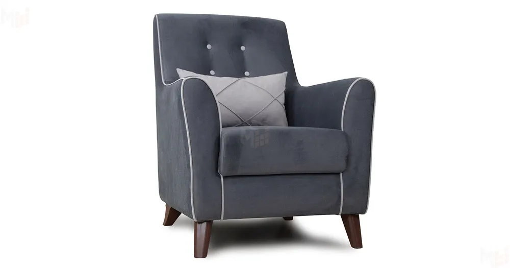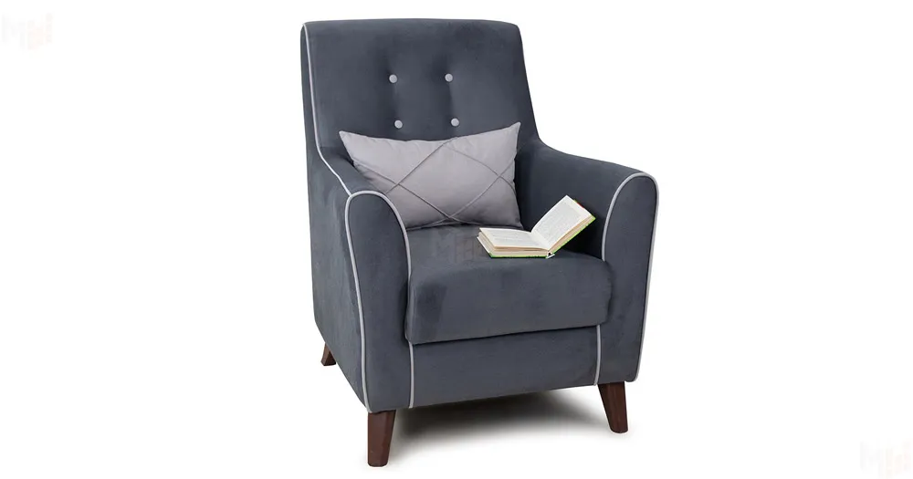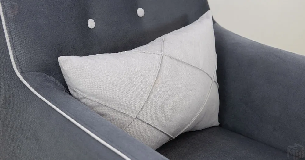 Декоративный кант на кресле, защипы на декоративной подушке, пуговицы на спинке.