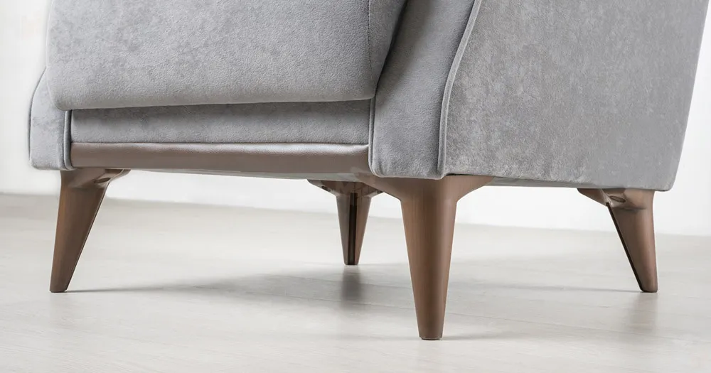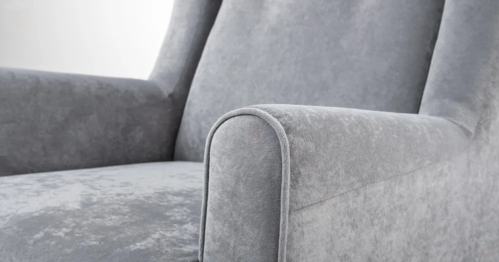 Декоративный кант из основной ткани по переднему торцу подлокотника; Утяжка спинки на 2 декоративные пуговицы из основного материала; Декоративный элемент царги из материала-компаньона.