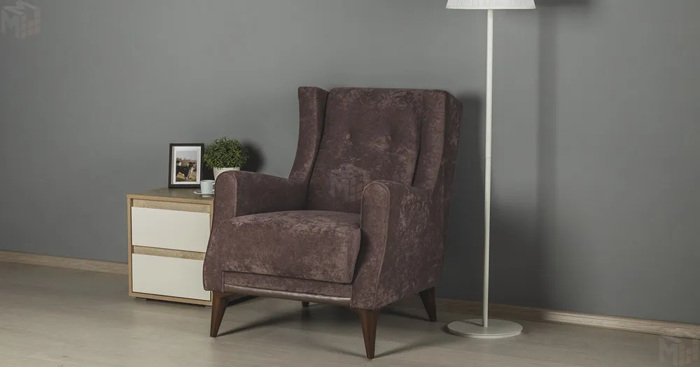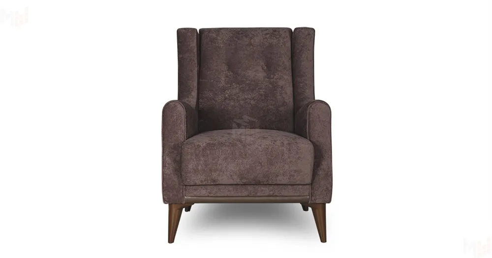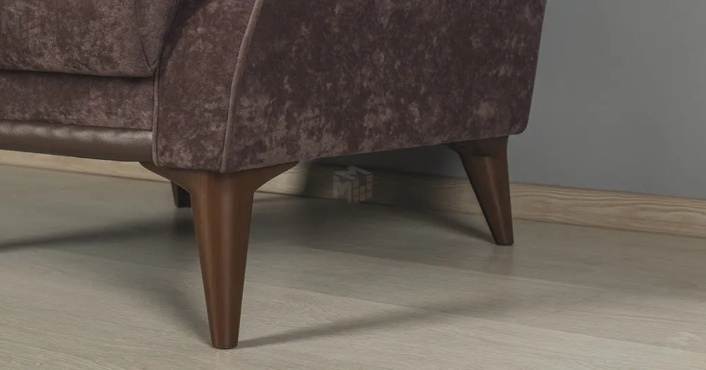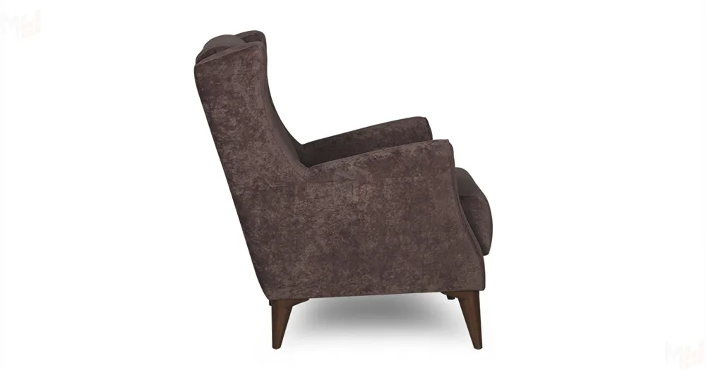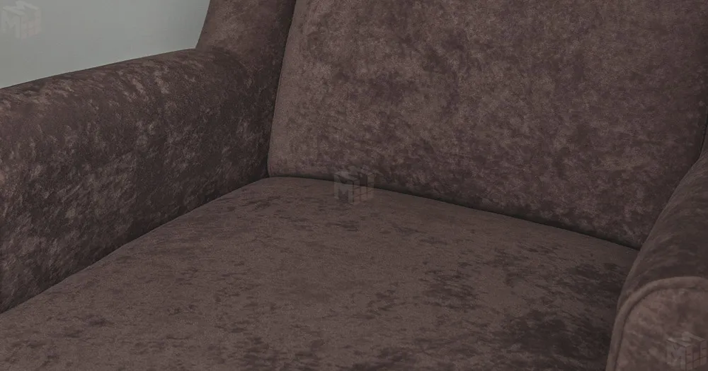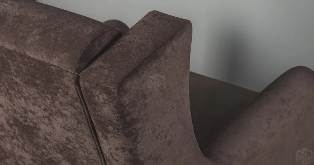 Декоративный кант из основной ткани по переднему торцу подлокотника; Утяжка спинки на 2 декоративные пуговицы из основного материала; Декоративный элемент царги из материала-компаньона.