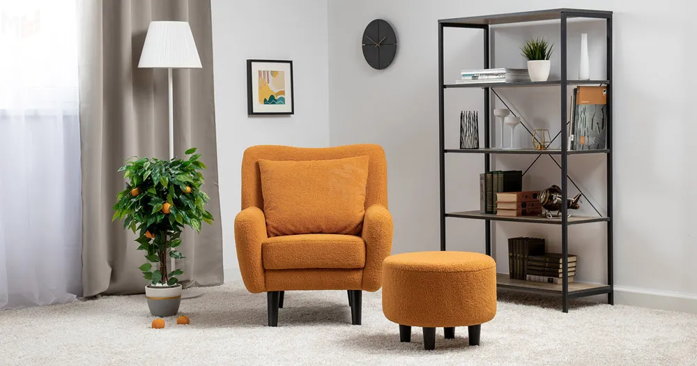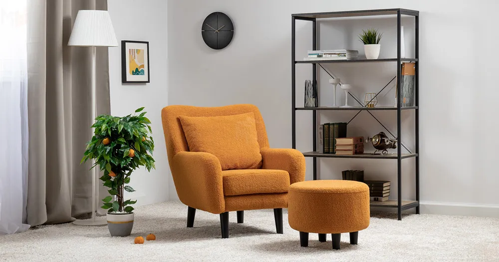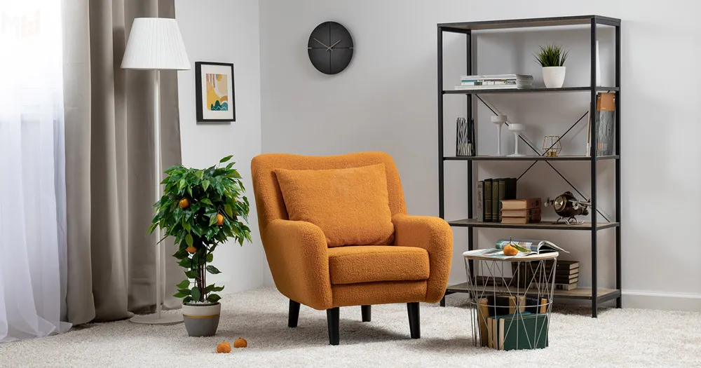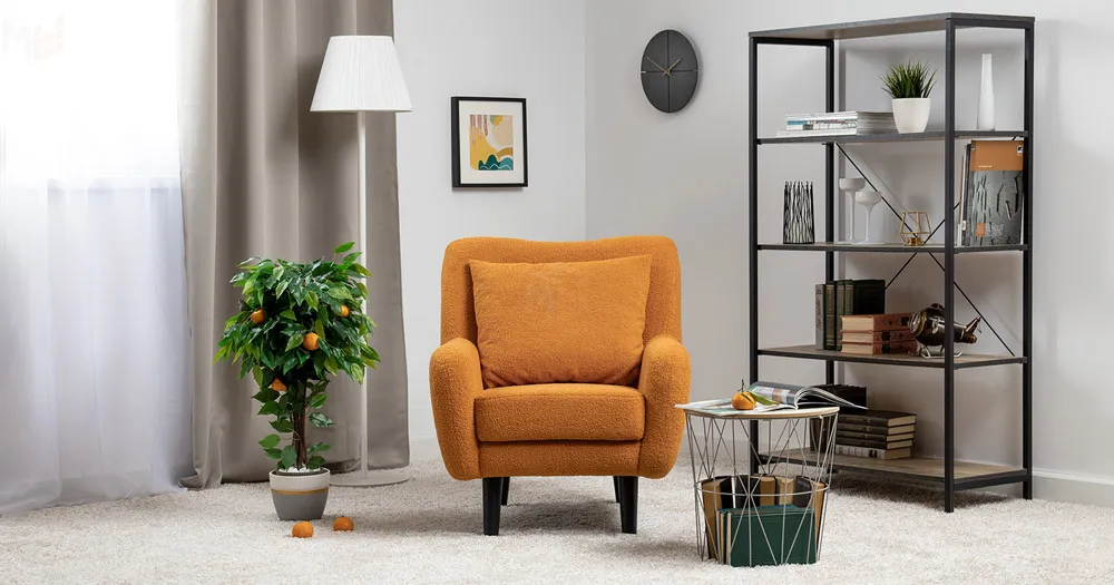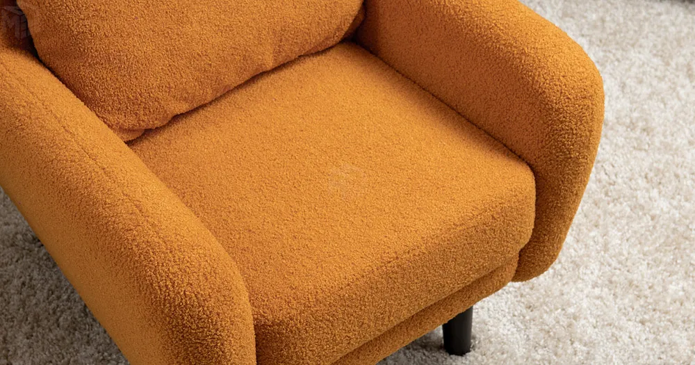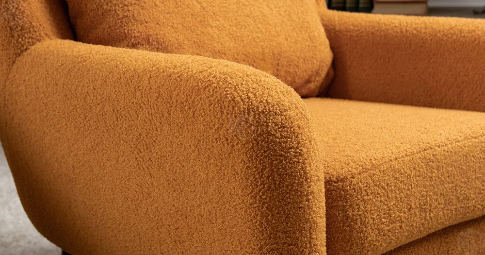 Ткань букле делает кресло особенно уютным и мягким. Приспинная подушка в цвете кресла