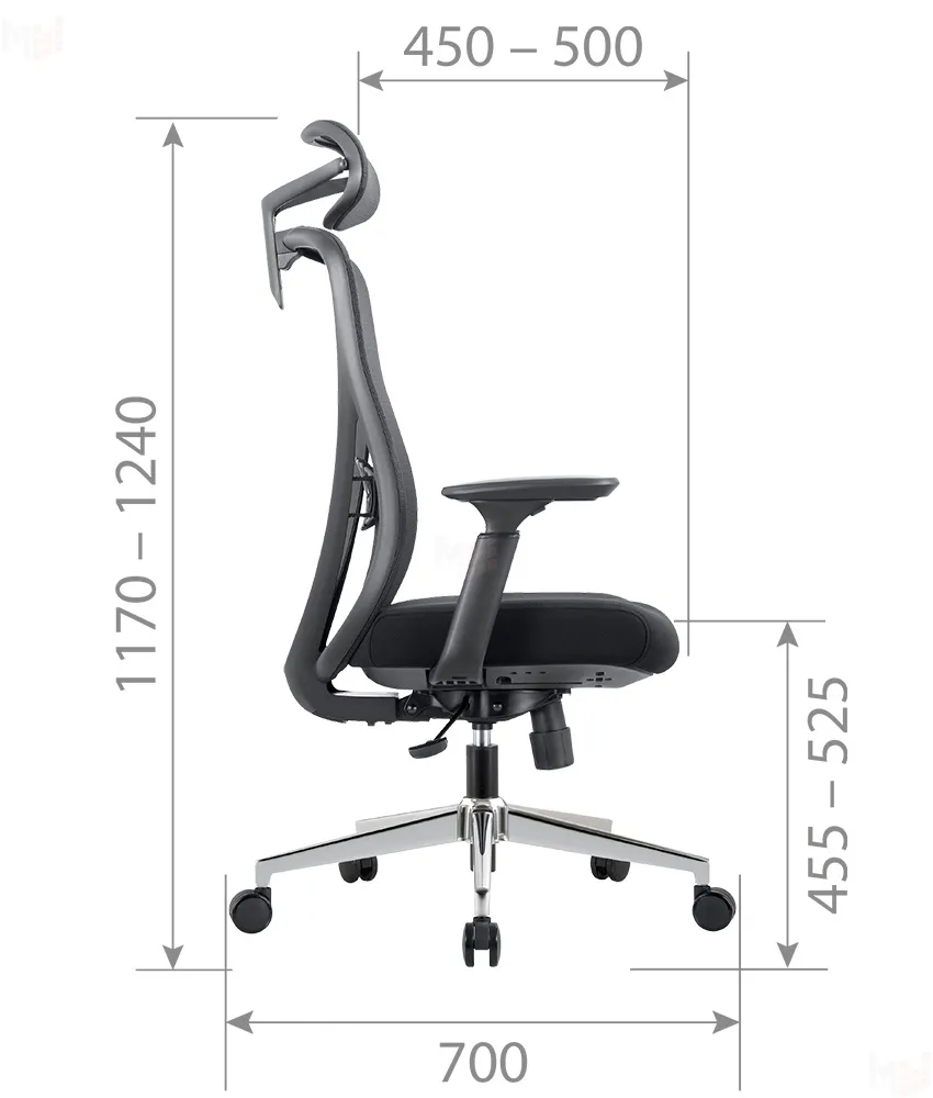 Механизм качания: С синхронным отклонением сидения и спинки 1:3, с фиксацией кресла в нескольких положениях. Sipro регулировка глубины сидения. Регулировка по высоте