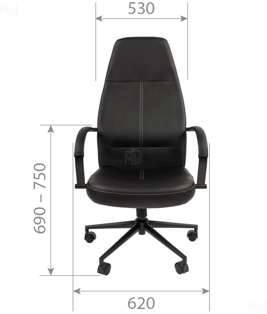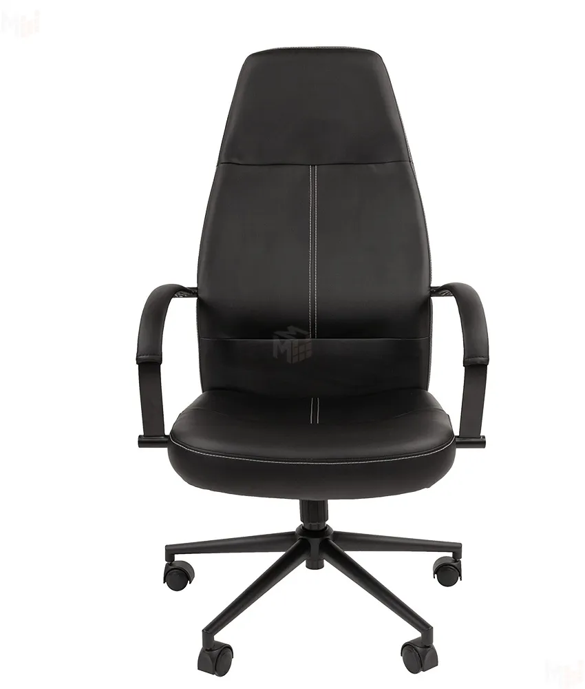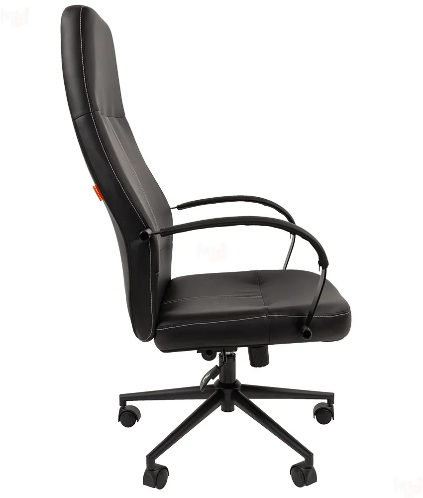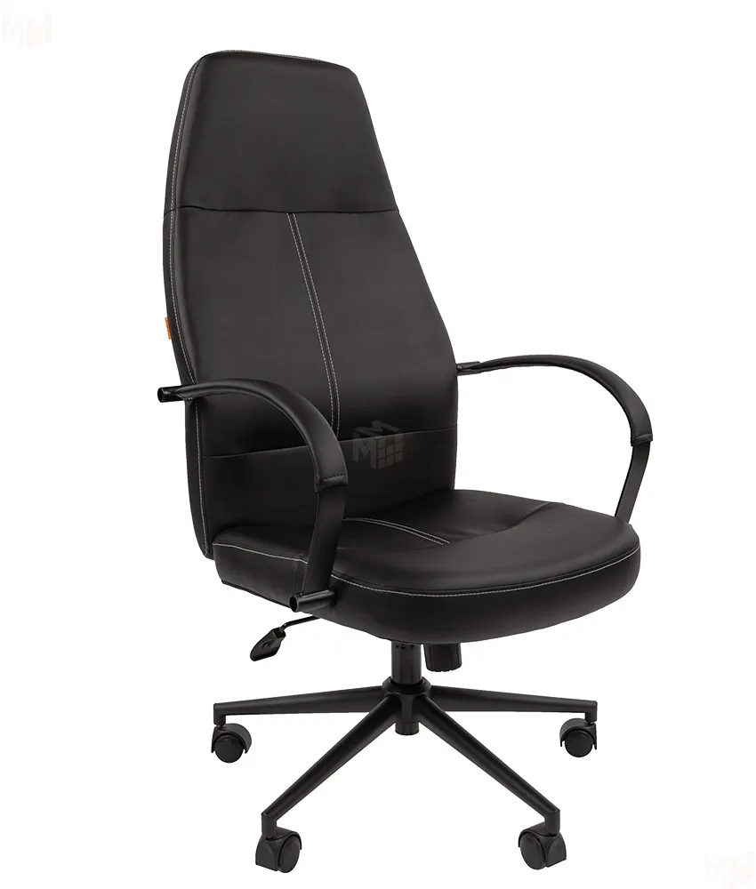 Удобная посадка, обивка из экокожи с контрастной строчкой в сочетании с черной металлической крестовиной и подлокотниками в тон придаст деловому пространству акцент сдержанной роскоши.