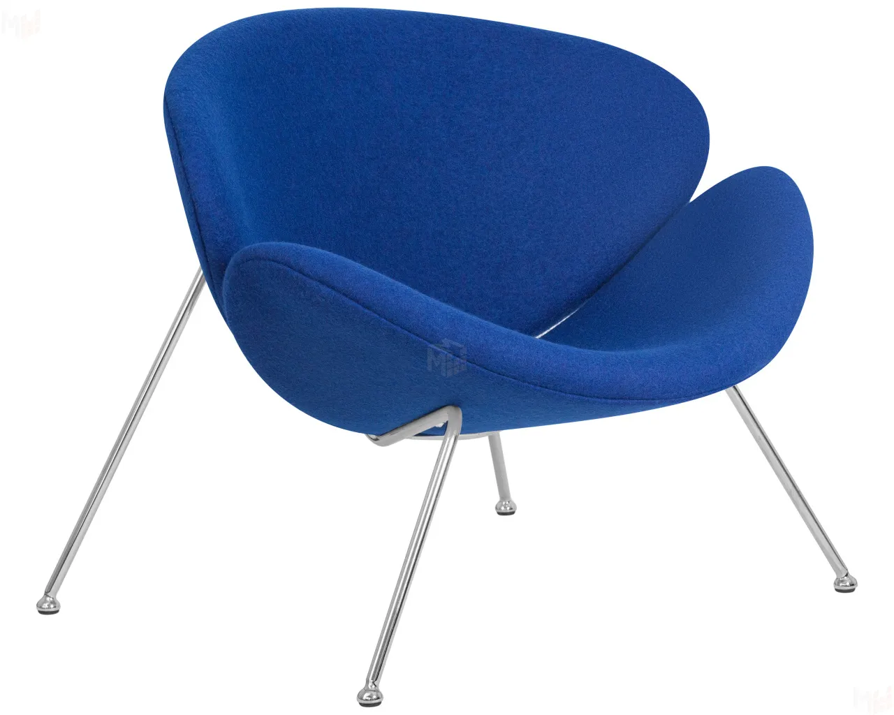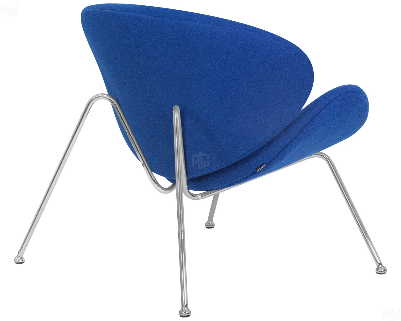 Металлический каркас, обивка - синяя ткань. Лаунж кресло.