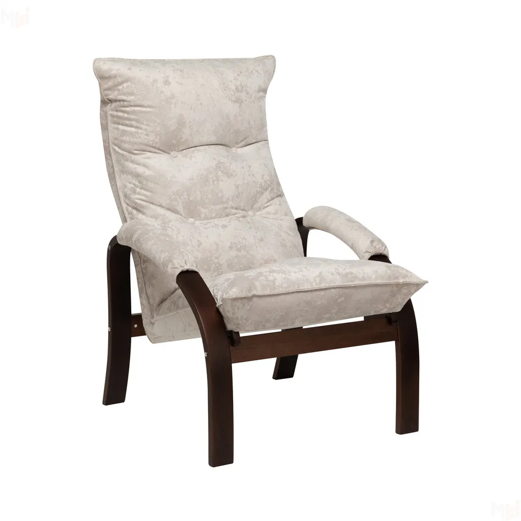 Мягкое кресло для отдыха дома и на даче Левада сделает комфортным интерьер комнаты модерн или хай-тек. Стильные кресла трансформеры из гнутоклееной коллекции мягкой мебели Leset имеют характерный силуэт, функциональны и компактны, поэтому популярны. Кресло-стул с подлокотниками и уютным сиденьем уместно в спальне, гостиной, прихожей, на балконе, в закрытой дачной беседке. У основания кресло раскладное оснащено механизмом гребенка, за счет чего одним движением спинка переключается в 4 положения. Этим модель напоминает шезлонг, но Левада Leset -полноценное интерьерное кресло для отдыха: современный дизайн, изящный деревянный каркас под итальянским лаком, велюровый чехол, наполнитель из эластичного пенополиуретана. Накладки на подлокотниках снимаются для чистки, приспинная подушка декорирована пуговицами. Эргономичное каркасное кресло раскладушка выдержит до 120 кг. Регулируемое кресло позволит расслабиться как на диване, это чудесный подарок в новую квартиру друзьям.
