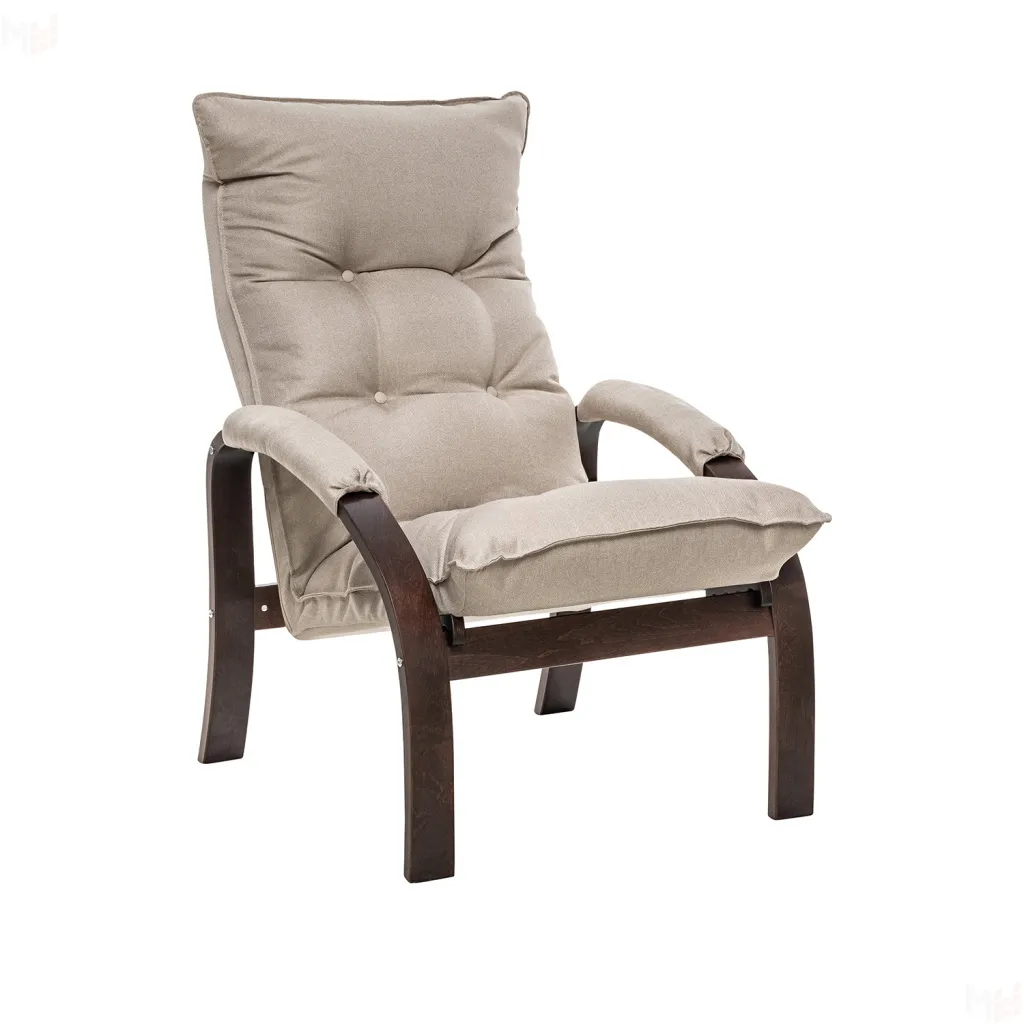 Мягкое кресло для отдыха дома и на даче Левада сделает комфортным интерьер комнаты модерн или хай-тек. Стильные кресла трансформеры из гнутоклееной коллекции мягкой мебели Leset имеют характерный силуэт, функциональны и компактны, поэтому популярны. Кресло-стул с подлокотниками и уютным сиденьем уместно в спальне, гостиной, прихожей, на балконе, в закрытой дачной беседке. У основания кресло раскладное оснащено механизмом гребенка, за счет чего одним движением спинка переключается в 4 положения. Этим модель напоминает шезлонг, но Левада Leset -полноценное интерьерное кресло для отдыха: современный дизайн, изящный деревянный каркас под итальянским лаком, велюровый чехол, наполнитель из эластичного пенополиуретана. Накладки на подлокотниках снимаются для чистки, приспинная подушка декорирована пуговицами. Эргономичное каркасное кресло раскладушка выдержит до 120 кг. Регулируемое кресло позволит расслабиться как на диване, это чудесный подарок в новую квартиру друзьям.