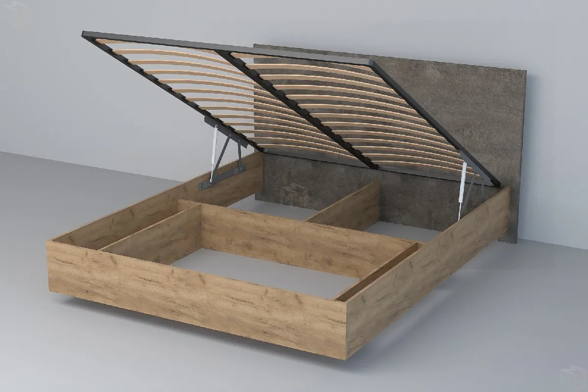 Кровать 031 Эго Дуб Крафт Золотой/Камень Темный (ЛДСП) ПМ 1400х2000