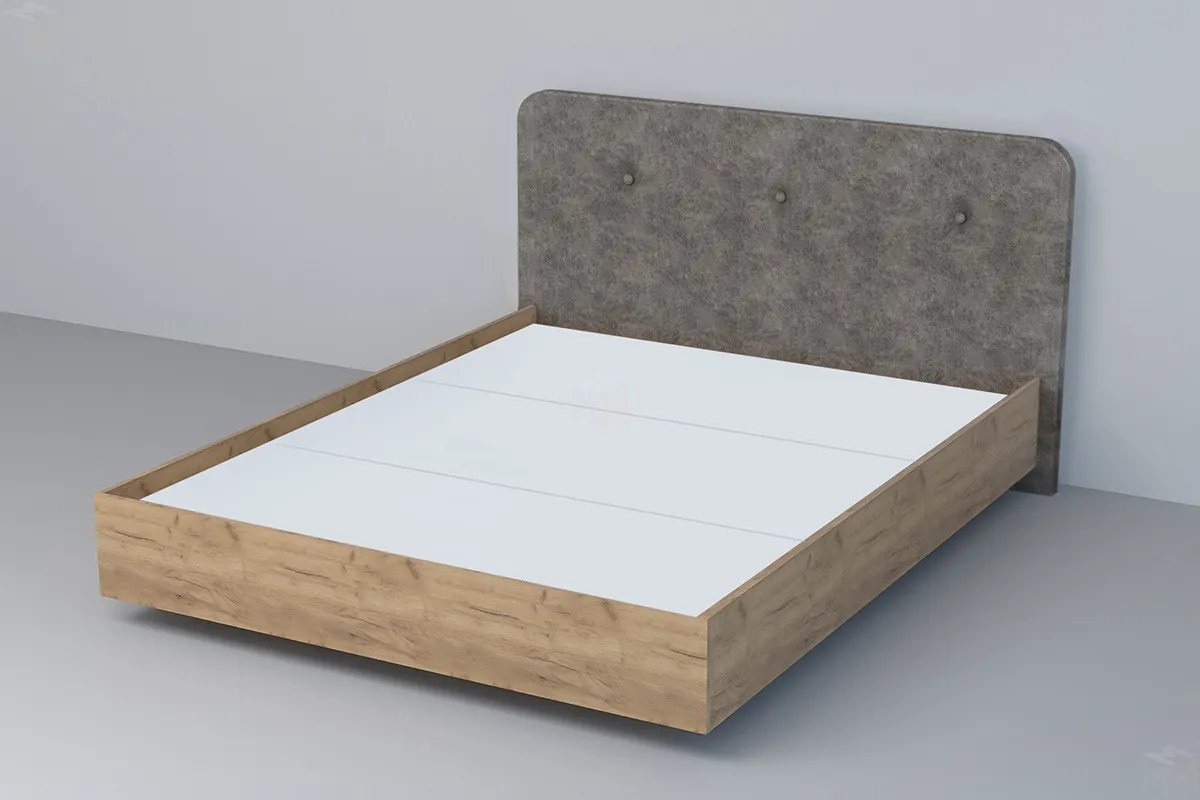 Кровать 031 Эго Дуб Крафт Золотой/Стальной Серый (Пуговицы) ЛН 1600х2000