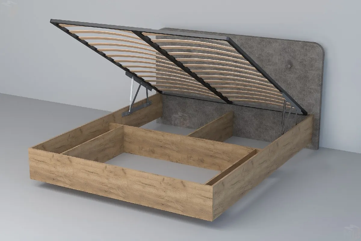 Кровать 031 Эго Дуб Крафт Золотой/Стальной Серый (Пуговицы) ПМ 1400х2000